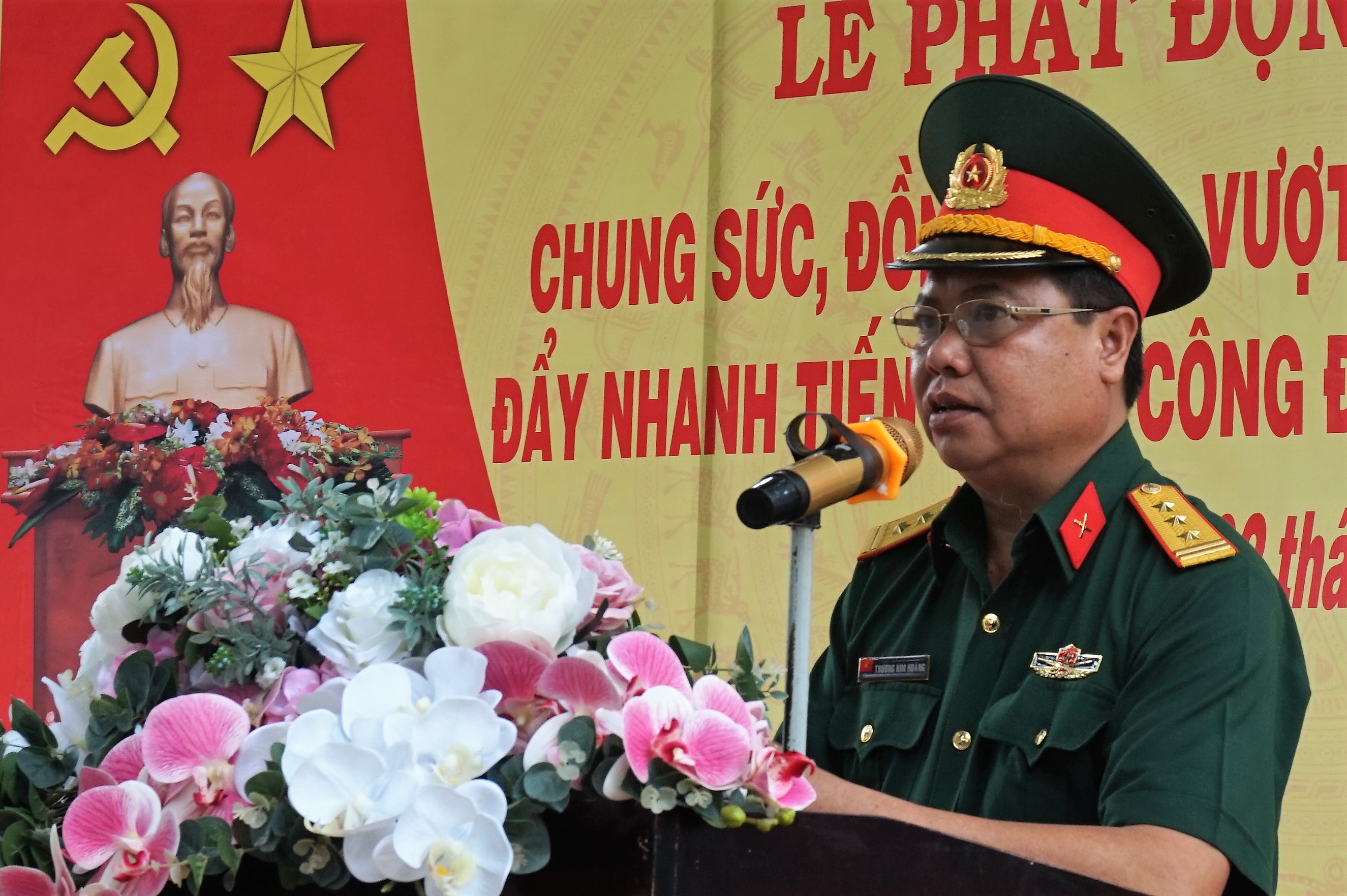 Đại tá Hoàng Đình Chung, Phó Chủ nhiệm Chính trị Quân khu khen thưởng cho các tập thể,