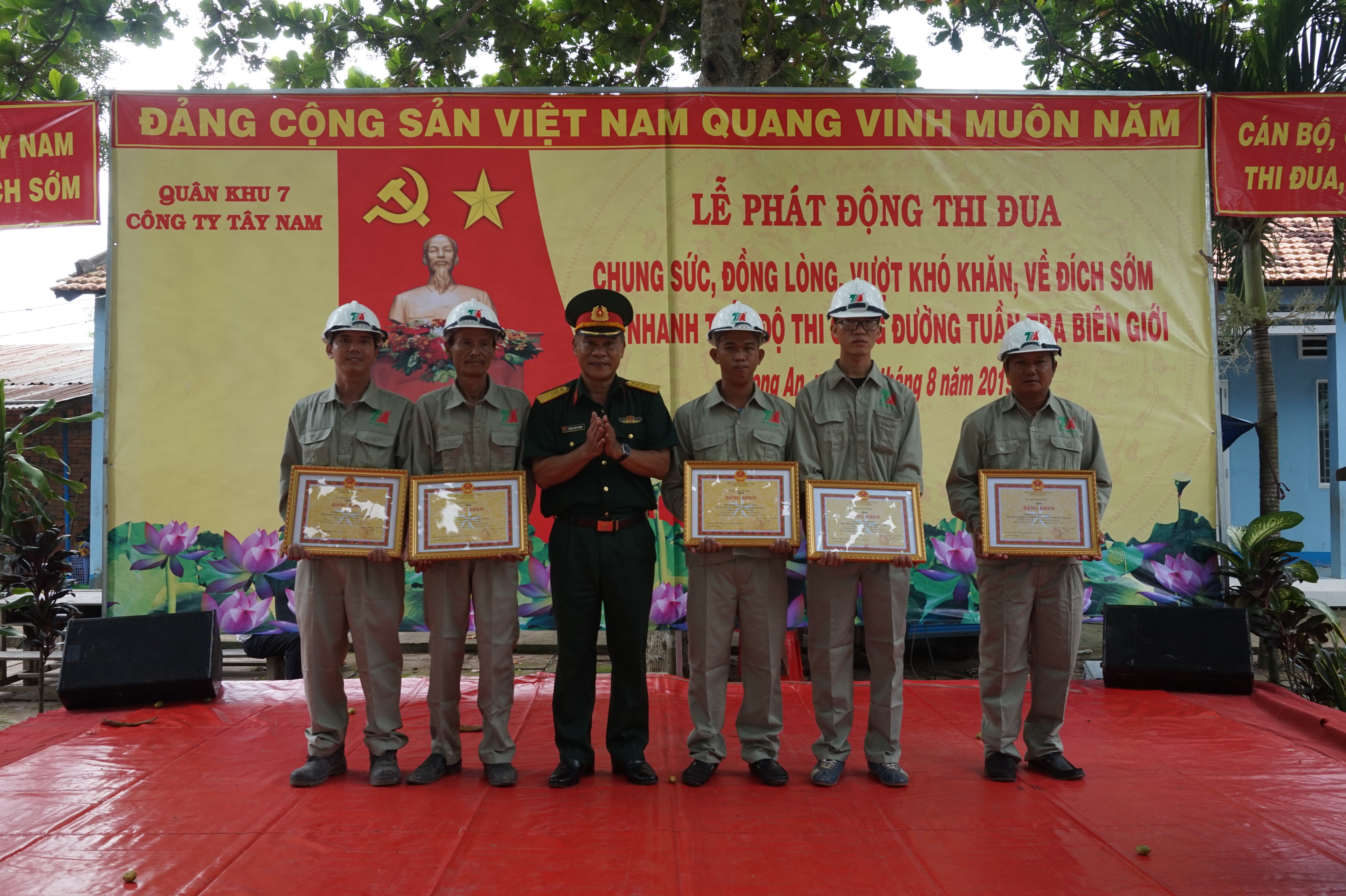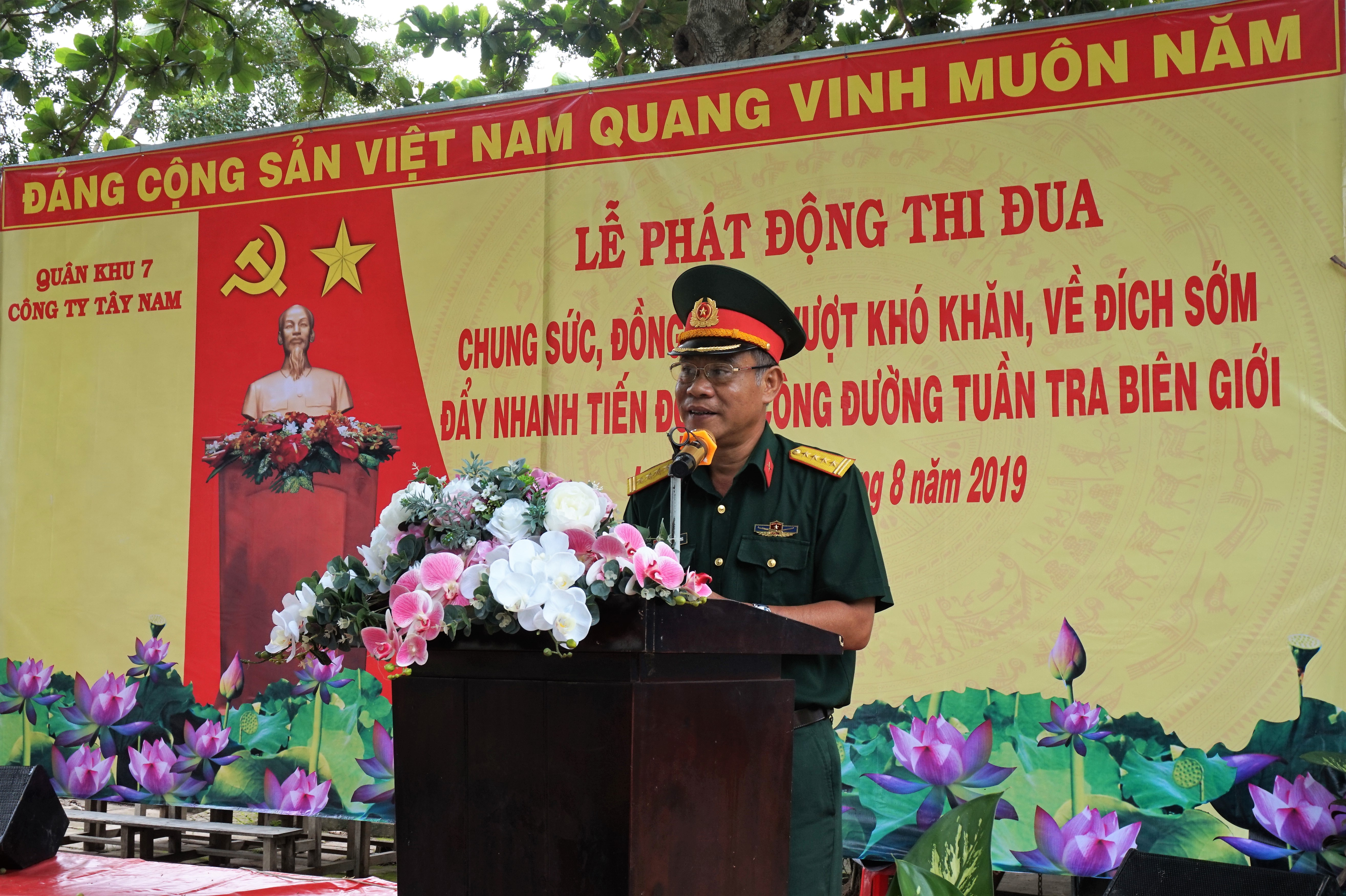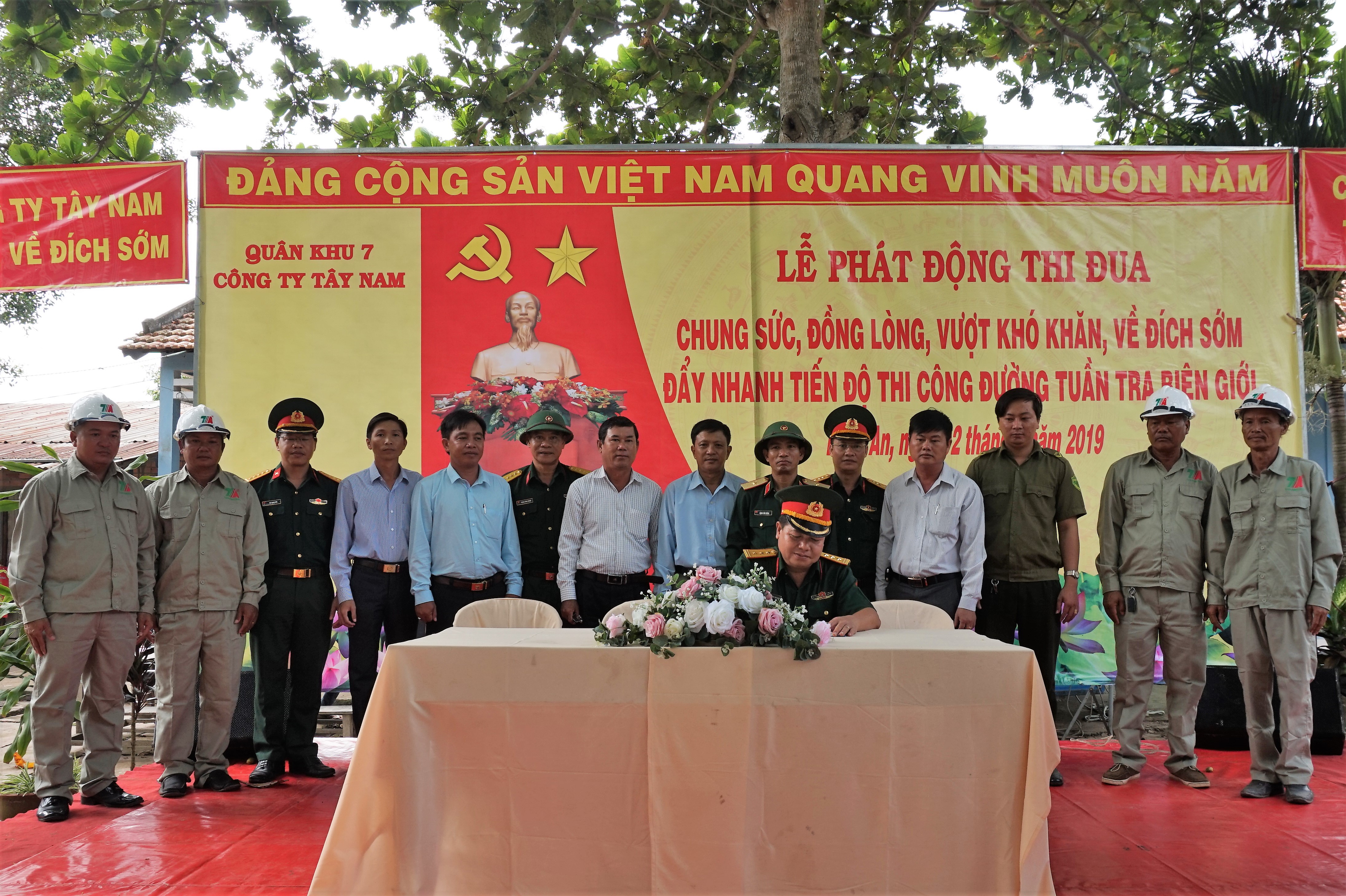 Tại lễ phát động thi đua, Thượng tá Trương Kim Hoàng, Bí thư Đảng ủy, Phó Tổng giám đốc Công ty Tây Nam đọc thư khen của đồng chí Chính ủy Quân khu gửi đến toàn thể cán bộ, chiến sĩ, công nhân viên, người lao động đang thi công đường tuần tra biên giới và Phát động thi đua đẩy nhanh tiến độ thi công trên công trường với chủ đề “Chung sức, đồng lòng, vượt khó khăn, về đích sớm, đẩy nhanh tiến độ thi công đường tuần tra biên giới”. Tập trung thực hiện 5 nhất: Tinh thần, trách nhiệm cao nhất; Phương tiện, máy móc, trang bị tốt nhất; Năng suất thi công cao nhất; Tiến độ thi công nhanh nhất; Chất lượng công trình tốt nhất.