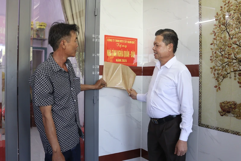 Tại buổi lễ, Công ty Tây Nam tặng kinh phí xây dựng 5 căn “Nhà tình nghĩa quân - dân” cho các hộ gia đình: Bùi Thanh Sang, Cao Hoàng Vinh, Lê Đặng Hải Phú, Lê Quốc Hải, Nguyễn Quốc Vinh tại xã Hòa Khánh. Đây là các hộ gia đình có hoàn cảnh đặc biệt khó khăn, chưa có nhà ở ổn định. Những mái ấm mới sẽ là điểm tựa vững chắc để bà con ổn định cuộc sống, yên tâm sản xuất và vươn lên thoát nghèo.