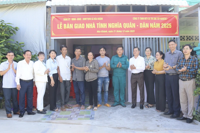 (QK7 Online) - Thiết thực chào mừng kỷ niệm 81 năm Ngày thành lập Quân đội nhân dân Việt Nam (22/12/1944 - 22/12/2025), 36 năm Ngày hội Quốc phòng toàn dân (22/12/1989 - 22/12/2025) và hướng tới Đại hội đại biểu toàn quốc lần thứ XIV của Đảng; sáng 21/12, Công ty Tây Nam, Quân khu 7 phối hợp với cấp ủy, chính quyền xã Hòa Khánh, tỉnh Tây Ninh tổ chức lễ trao tặng “Nhà tình nghĩa quân - dân” cho 5 hộ gia đình có hoàn cảnh đặc biệt khó khăn về nhà ở.