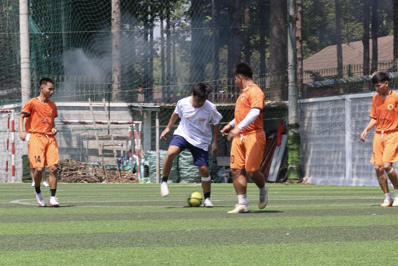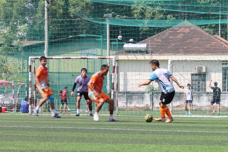 Các cầu thủ thi đấu nhiệt tình với tinh thần giao lưu, đoàn kết.