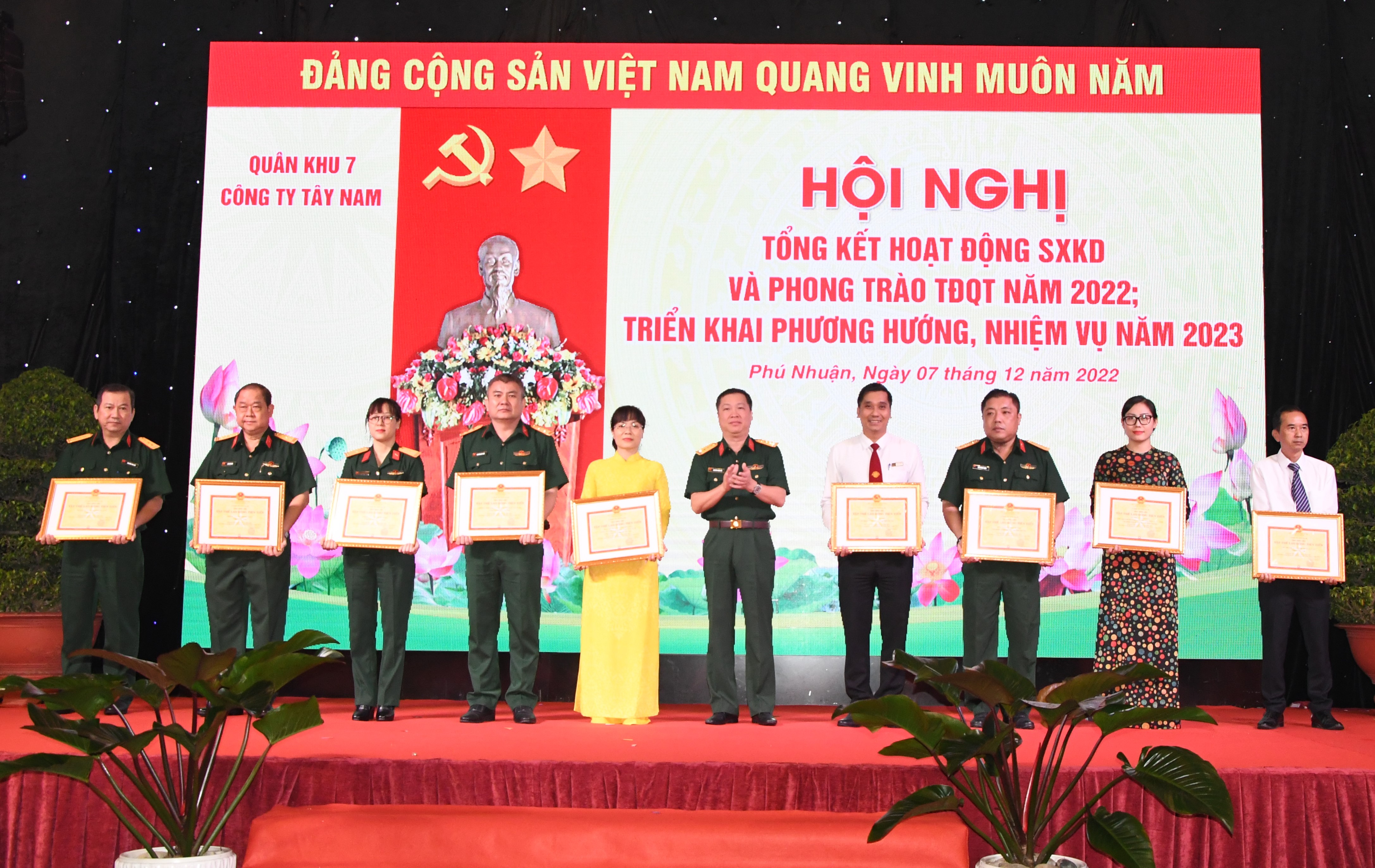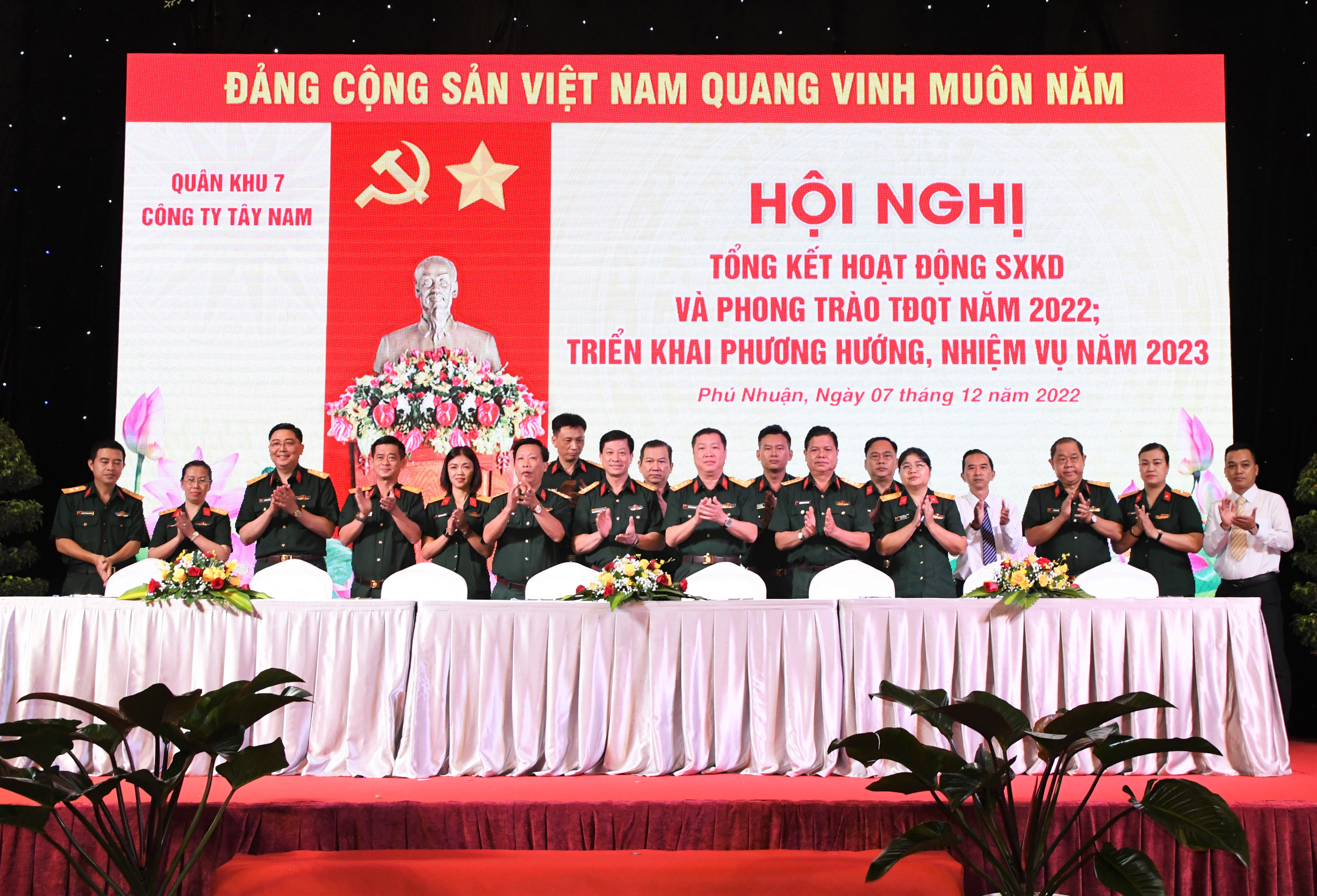 Nổi bật trong 2022, Công ty thực hiện tốt nhiệm vụ phục vụ quốc phòng, an ninh đảm bảo kịp thời, chính xác, chu đáo và an toàn phục vụ các Đoàn khách Campuchia, Lào, Đoàn đại biểu về dự Hội nghị Quân khu; Tiếp kiến, chiêu đãi; Phục vụ tiếp kiến, hội nghị, chiêu đãi các cơ quan Quân khu, Bộ Quốc phòng: 96 đoàn 8.905 lượt khách; Phục vụ lưu trú: 108 đoàn với 967 lượt phòng và 884 lượt khách; Khách sạn Tân Sơn Nhất Côn Đảo đón tiếp và phục vụ ăn, nghỉ cho đoàn công tác Quân khu, Bộ Quốc phòng; cấp phát 1.500.000 lít xăng dầu nhớt quân sự phục vụ công tác thường xuyên và hoạt động sẵn sàng chiến đấu của LLVT Quân khu.