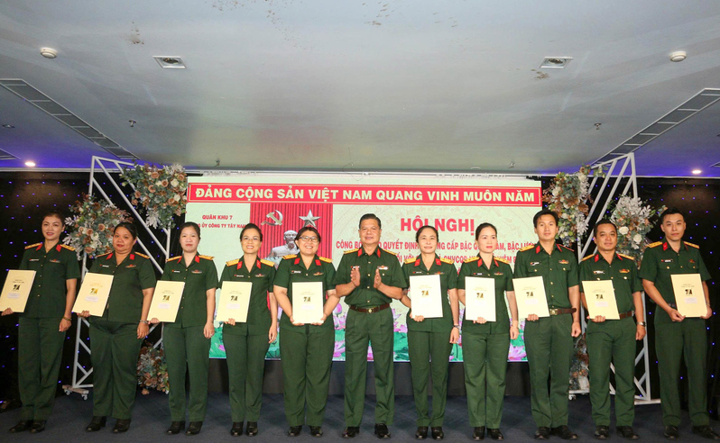 (QK7 Online) - Chiều ngày 3/10, Công ty Tây Nam tổ chức Hội nghị công bố, trao quyết định thăng quân hàm, nâng bậc lương đối với quân nhân chuyên nghiệp (QNCN) dịp kỷ niệm 80 năm Quốc khánh nước Cộng hòa xã hội chủ nghĩa Việt Nam.