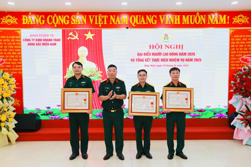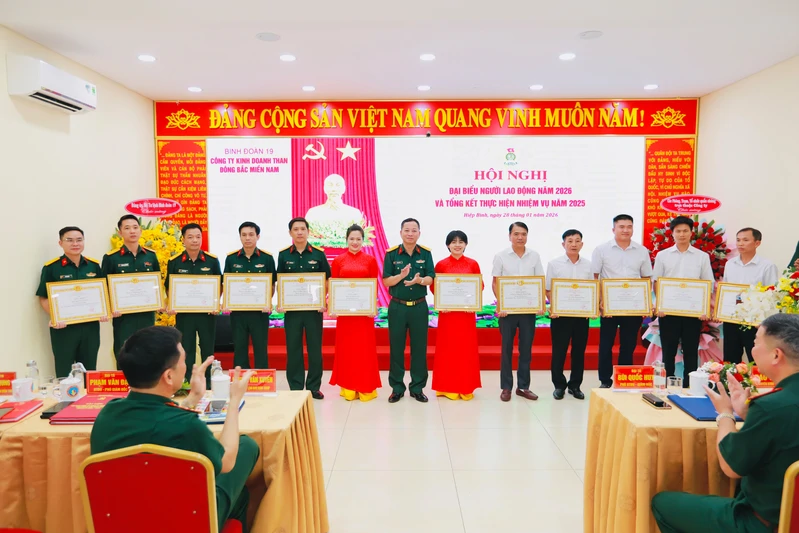 Lãnh đạo Công ty Than Đông Bắc miền Nam trao bằng khen cho các tập thể, cá nhân tiêu biểu, đạt thành tích xuất sắc năm 2025.