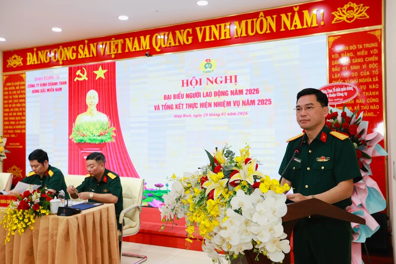 (QK7 Online) – Sáng 28/1, Công ty Than Đông Bắc miền Nam tổ chức Hội nghị đại biểu người lao động năm 2026, tổng kết nhiệm vụ năm 2025. Đại tá Nguyễn Văn Xuyến, Phó Tư lệnh Binh đoàn 19 - Tổng Công ty Than Đông Bắc dự hội nghị.