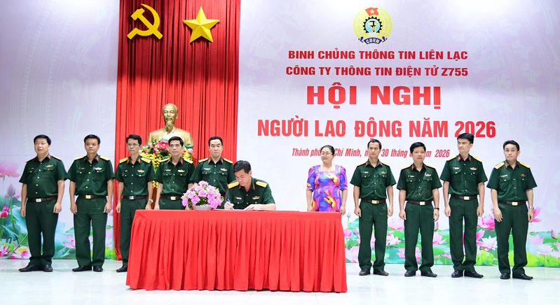 (QK7 Online) - Ngày 30/1, Công ty Thông tin Điện tử (TTĐT) Z755 (Binh chủng Thông tin liên lạc) tổ chức Hội nghị người lao động đánh giá kết quả thực hiện nhiệm vụ sản xuất, kinh doanh năm 2025, xác định phương hướng, mục tiêu và các giải pháp nâng cao hiệu quả sản xuất năm 2026. Đại tá Lại Việt Trung, Giám đốc Công ty TTĐT Z755 chủ trì hội nghị. Dự hội nghị có các đồng chí trong ban lãnh đạo và cán bộ, nhân viên công ty.