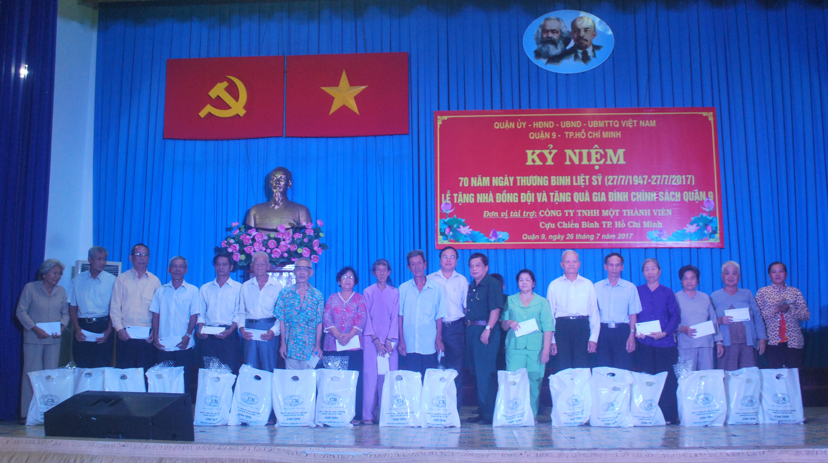 Dịp 27-7-2017, Công ty TNHH MTV Cựu chiến binh thành phố Hồ Chí Minh đã tặng 2 căn nhà đồng đội, mỗi căn trị giá 50 triệu đồng và trao trên 400 phần quà cho các gia đình chính sách tiêu biểu hoàn cảnh khó khăn trên địa bàn quận 9 với tổng kinh phí 520 triệu đồng.