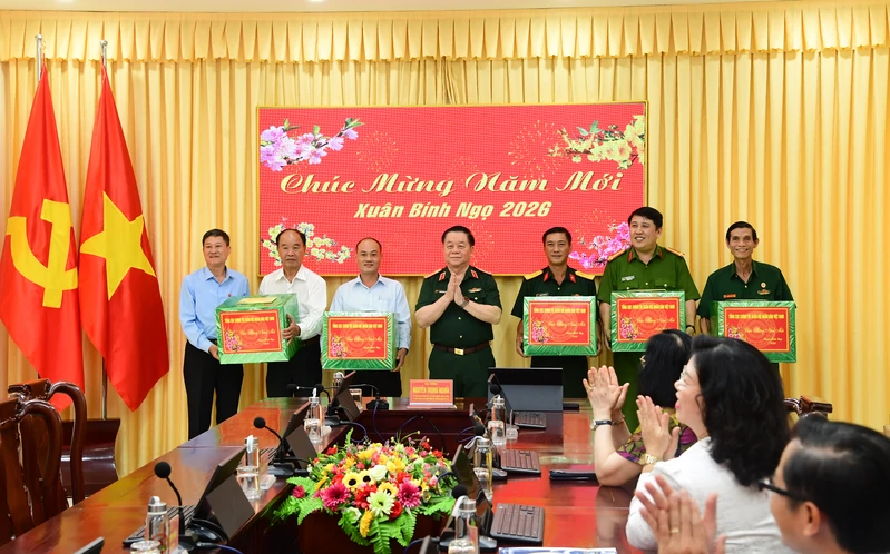Đại tướng Nguyễn Trọng Nghĩa, Ủy viên Bộ Chính trị, Bí thư Trung ương Đảng, Chủ nhiệm Tổng cục Chính trị chúc tết Đảng ủy, UBND, UBMTTQ Việt Nam, Công an, Ban Chỉ huy Quân sự, Hội Cựu chiến binh phường Tân Sơn Hòa.