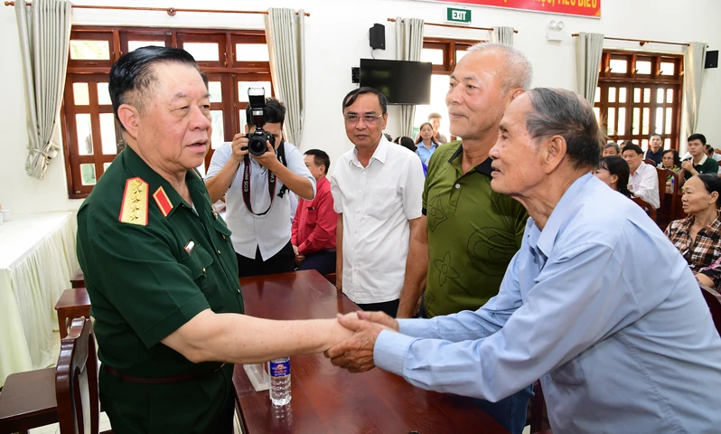 Đại tướng Nguyễn Trọng Nghĩa, Ủy viên Bộ Chính trị, Bí thư Trung ương Đảng, Chủ nhiệm Tổng cục Chính trị thăm hỏi sức khỏe các cử tri.