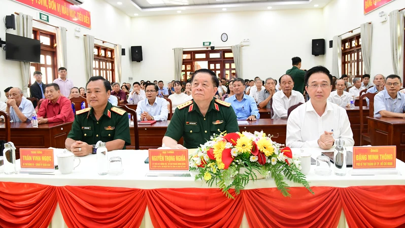 Đại tướng Nguyễn Trọng Nghĩa, Ủy viên Bộ Chính trị, Bí thư Trung ương Đảng, Chủ nhiệm Tổng cục Chính trị; Trung tướng Trần Vinh Ngọc, Bí thư Đảng ủy, Chính ủy Quân khu 7; Đồng chí Trần Minh Thông, Phó Bí thư Thành ủy Thành phố Hồ Chí Minh dự hội nghị.