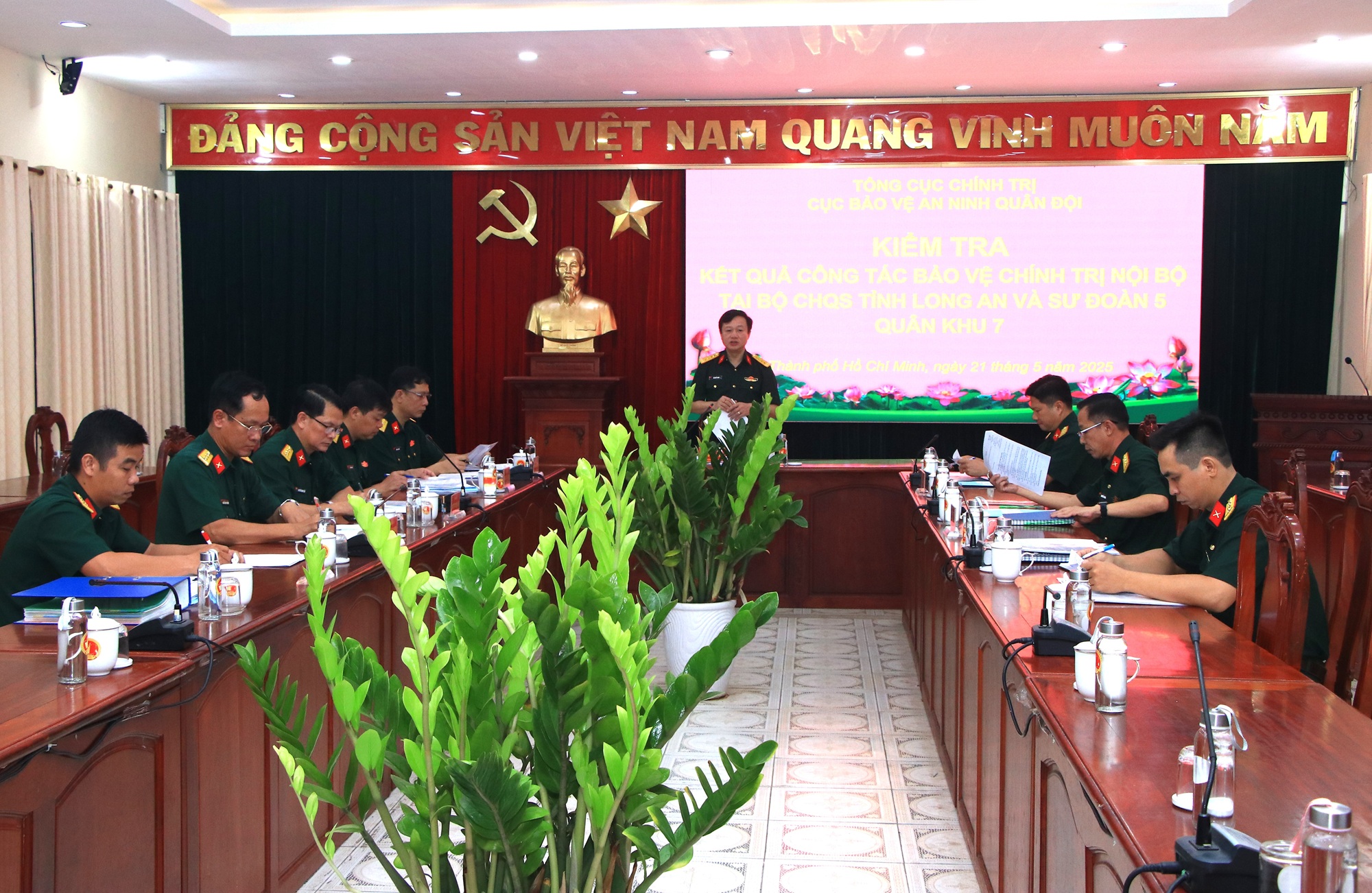 (QK7 Online) - Sáng ngày 21/5, đoàn kiểm tra Cục Bảo vệ An ninh Quân đội (BVANQĐ), Tổng cục Chính trị do đồng chí Đại tá Đỗ Quyết Khoa, Phó Cục trưởng Cục BVANQĐ làm trưởng đoàn tổ chức kiểm tra, nắm tình hình rà soát chính trị nội bộ của Bộ CHQS tỉnh Long An và Sư đoàn 5, Quân khu 7.