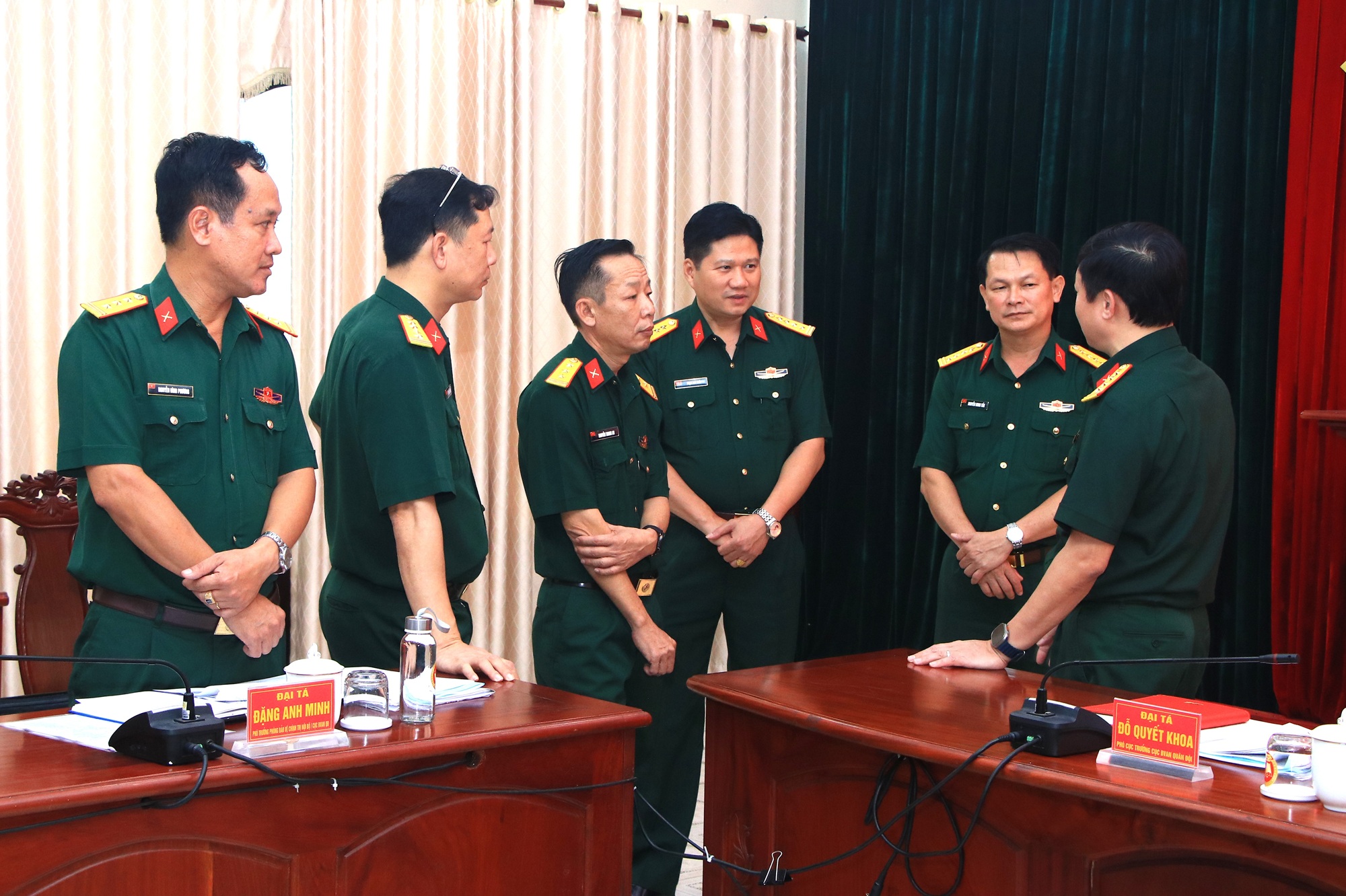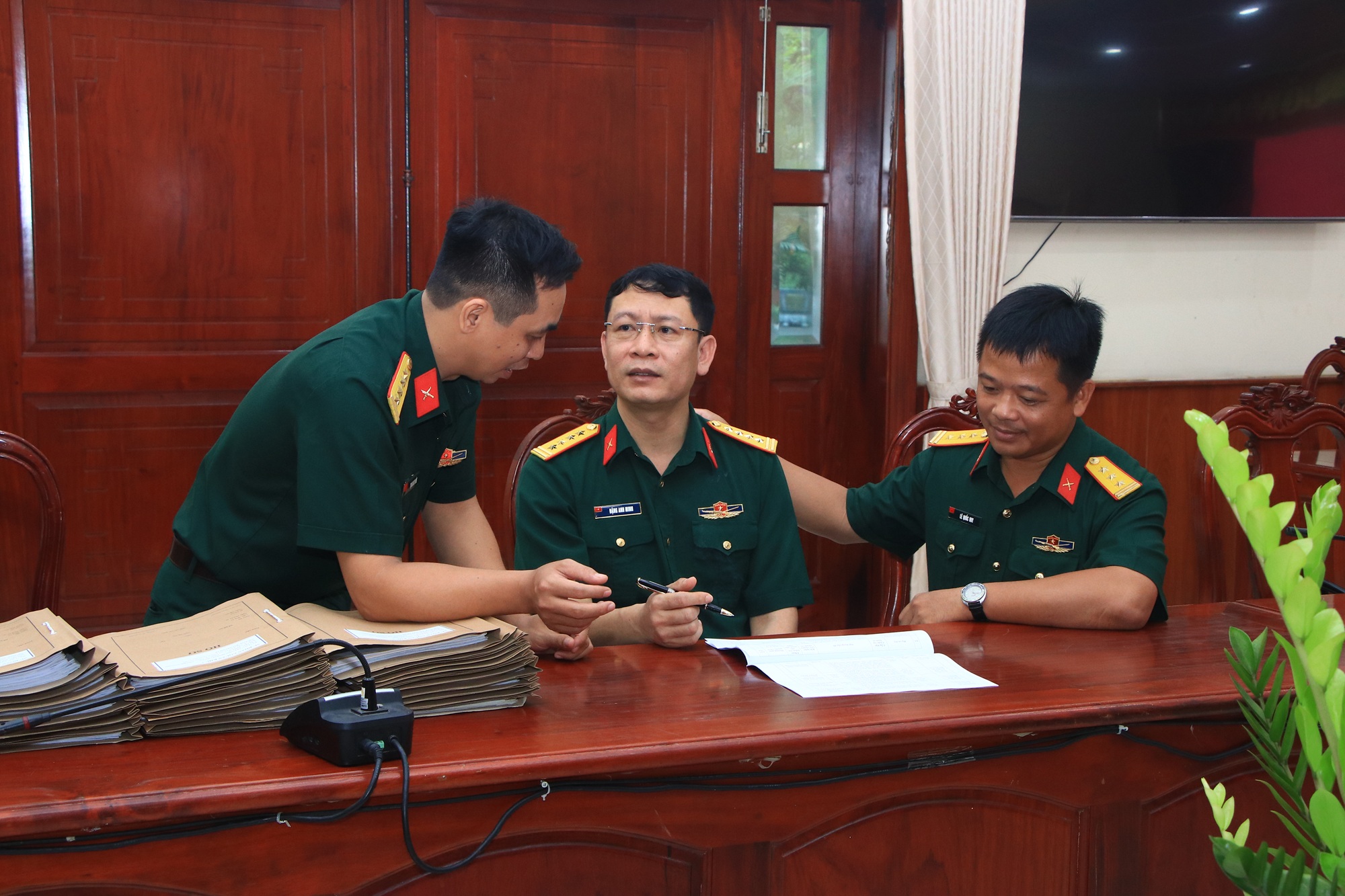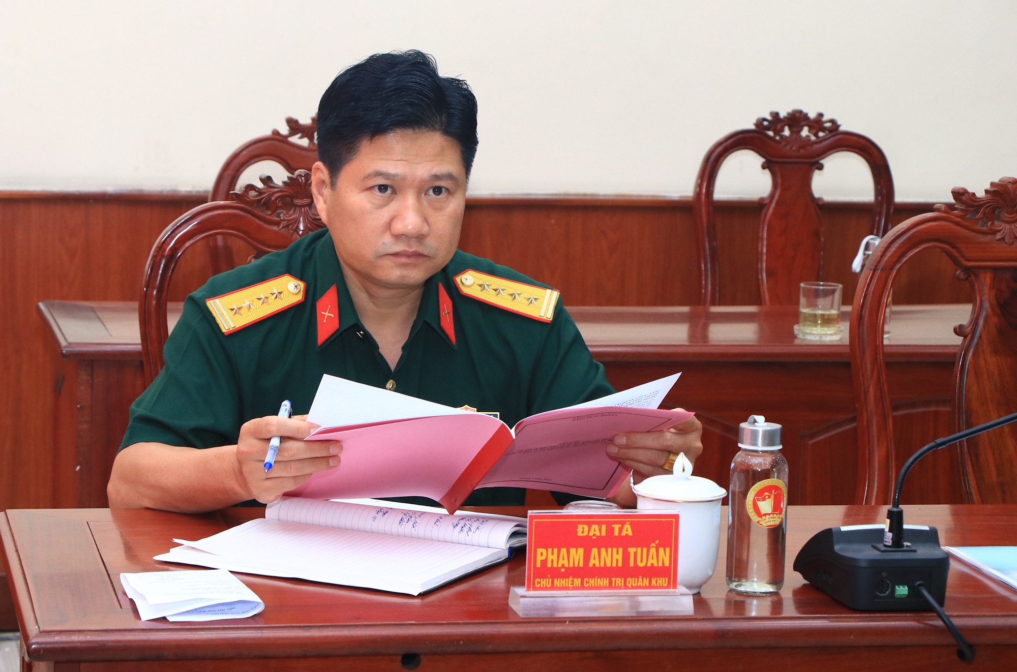 Đại tá Phạm Anh Tuấn, Chủ nhiệm Chính trị Quân khu dự và làm việc với đoàn kiểm tra.