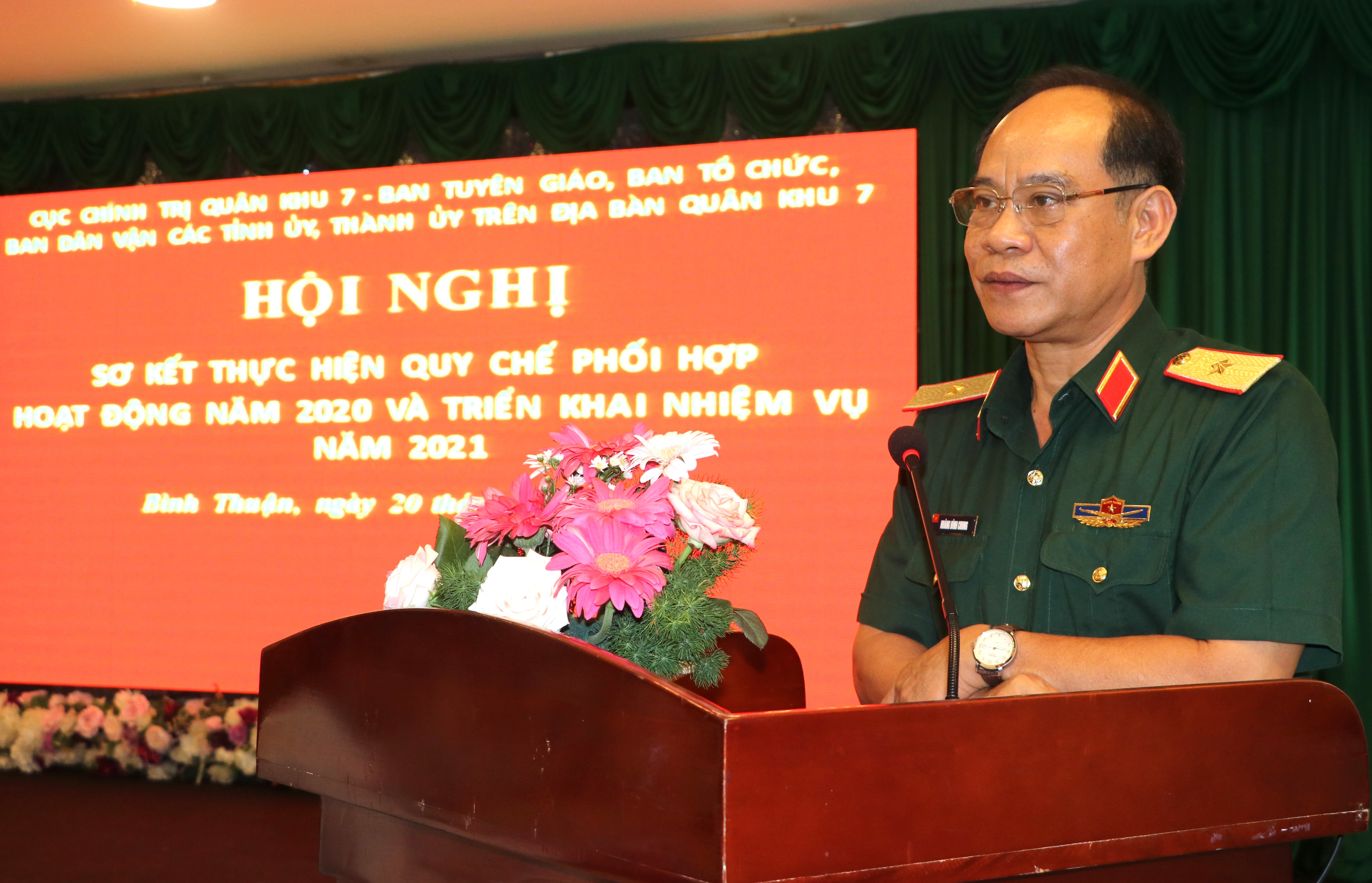 Nêu cao tinh thần chủ động, nhạy bén, quyết liệt trong chỉ đạo, hướng dẫn, kiểm tra công tác đảng, công tác chính trị trong LLVT Quân khu; tập trung xây dựng chi bộ, đội ngũ cán bộ, đảng viên ở cơ sở vững mạnh, làm nền tảng nâng cao chất lượng xây dựng Đảng bộ, LLVT Quân khu.