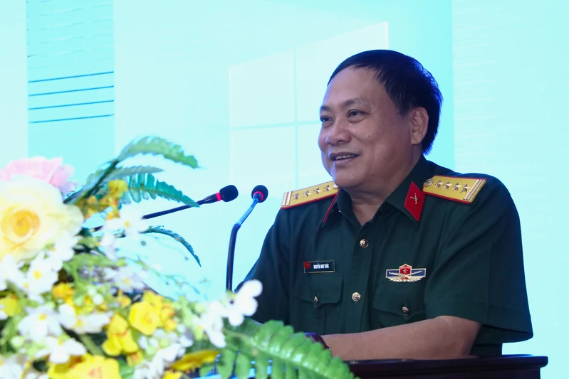 Đại tá Nguyễn Như Trúc, Phó Chủ nhiệm Chính trị Quân khu thông tin các chuyên đề tại hội nghi.