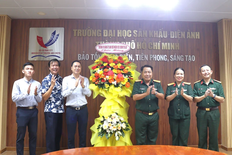 Đoàn công tác chúc mừng Trường Đại học Sân khấu - Điện ảnh TPHCM.