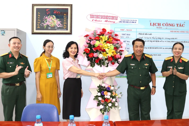 Đoàn công tác chúc mừng Trường Tiểu học Lê Văn Sỹ.