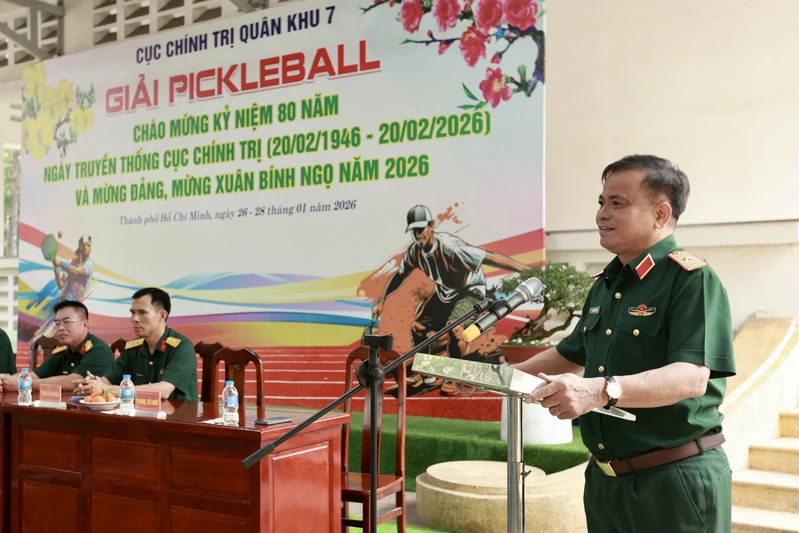 (QK7 Online) – Chiều 26/1, Cục Chính trị Quân khu 7 tổ chức khai mạc giải Pickleball chào mừng kỷ niệm 80 năm Ngày truyền thống Cục Chính trị Quân khu (20/02/1946 – 20/02/2026) và mừng Đảng, mừng Xuân Bính ngọ năm 2026. Thiếu tướng Trần Đức Thắng, Bí thư Đảng ủy Cục Chính trị, Phó Chủ nhiệm Chính trị Quân khu dự và phát biểu khai mạc.
