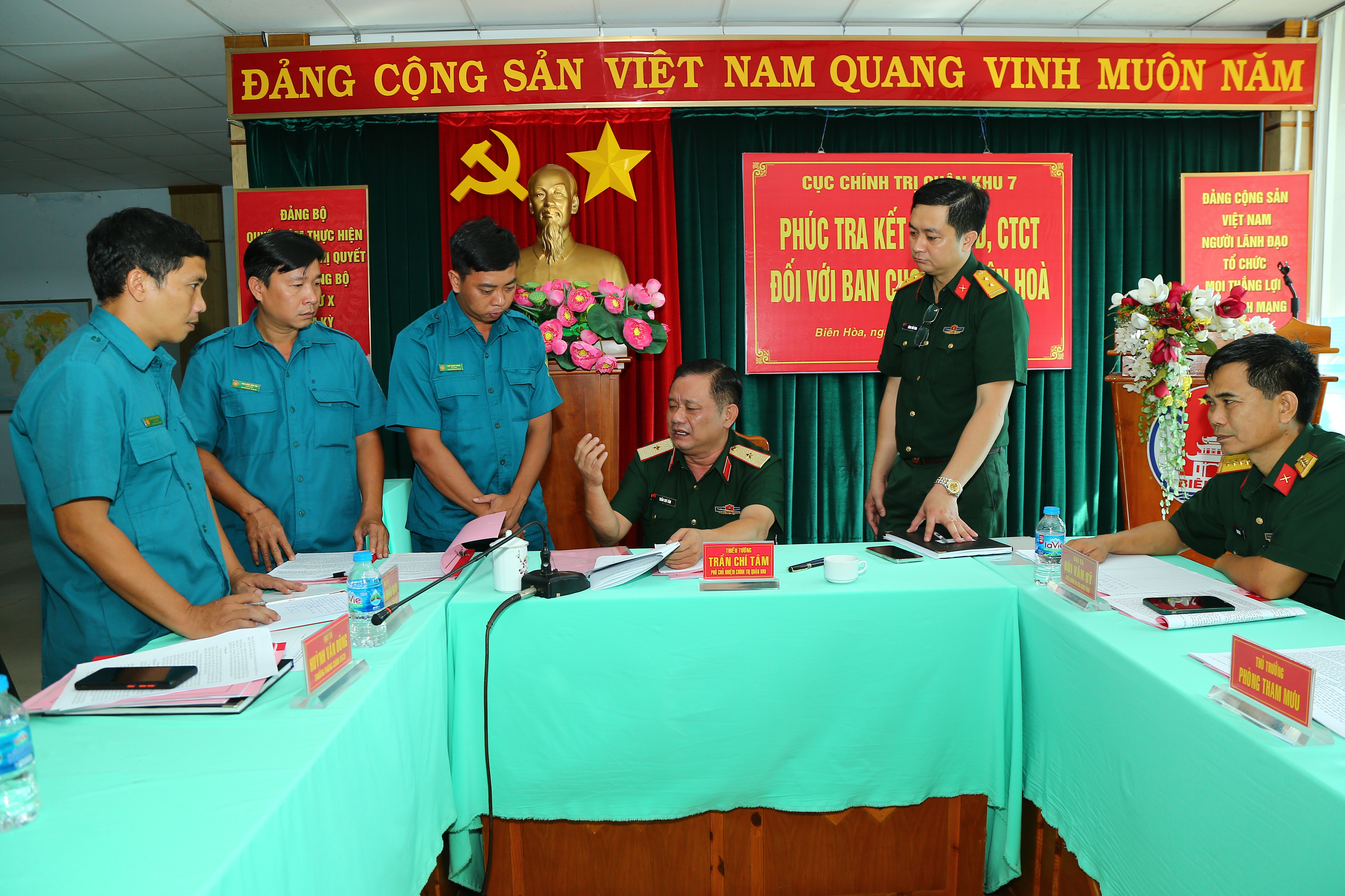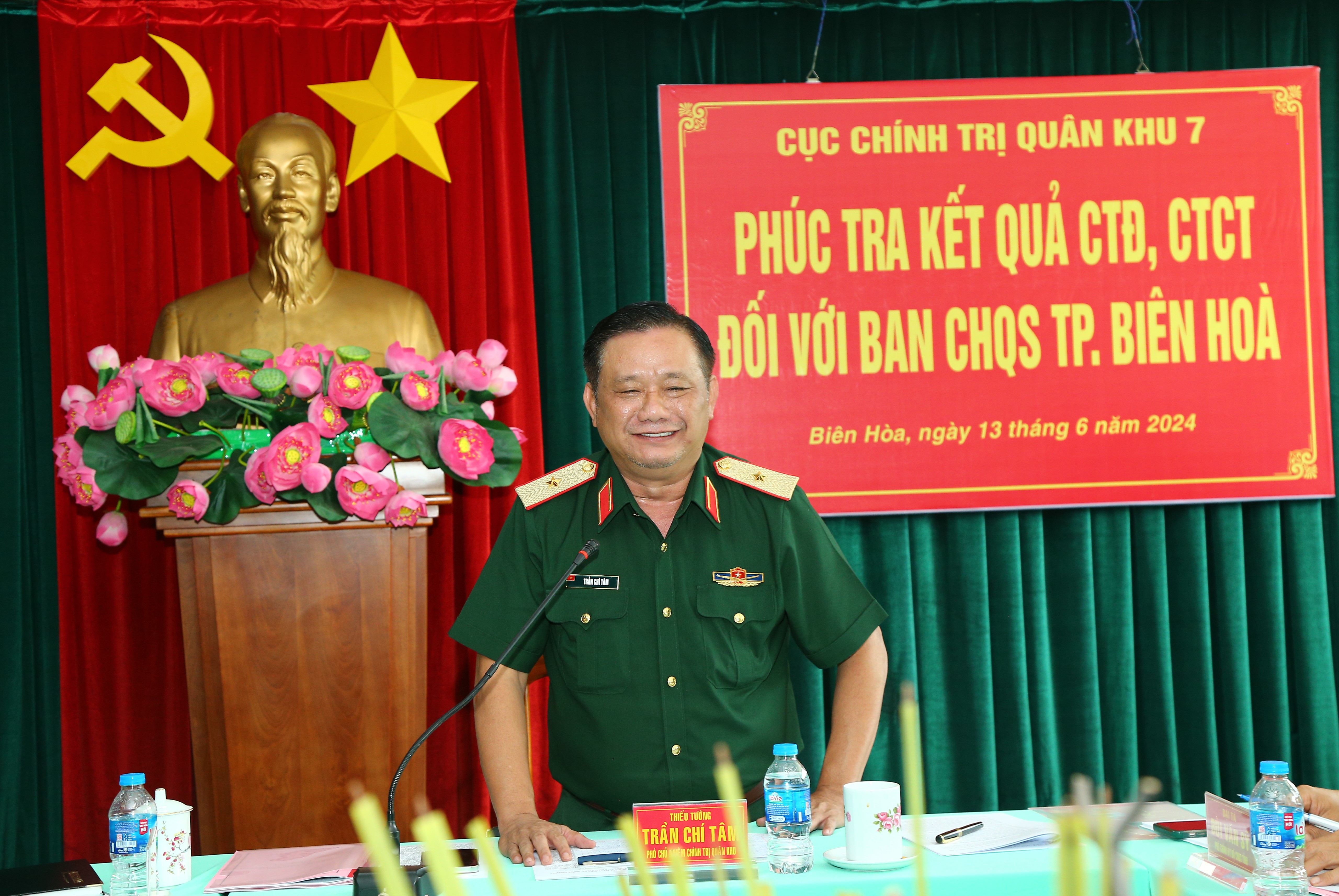 Thiếu tướng Trần Chí Tâm, Phó Chủ nhiệm Chính trị Quân khu kiểm tra các nội dung CTĐ, CTCT của Ban CHQS Thành phố Biên Hòa .