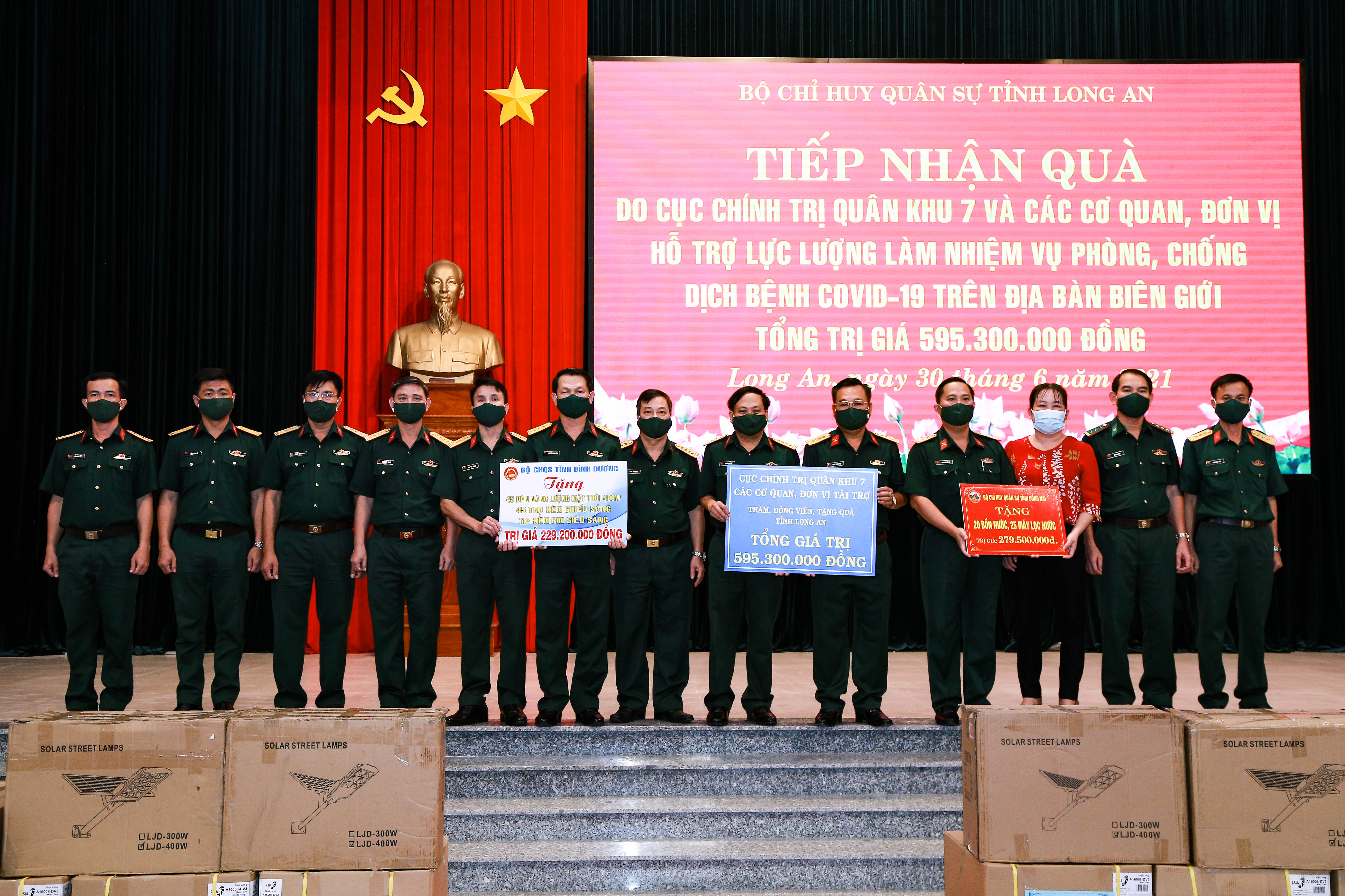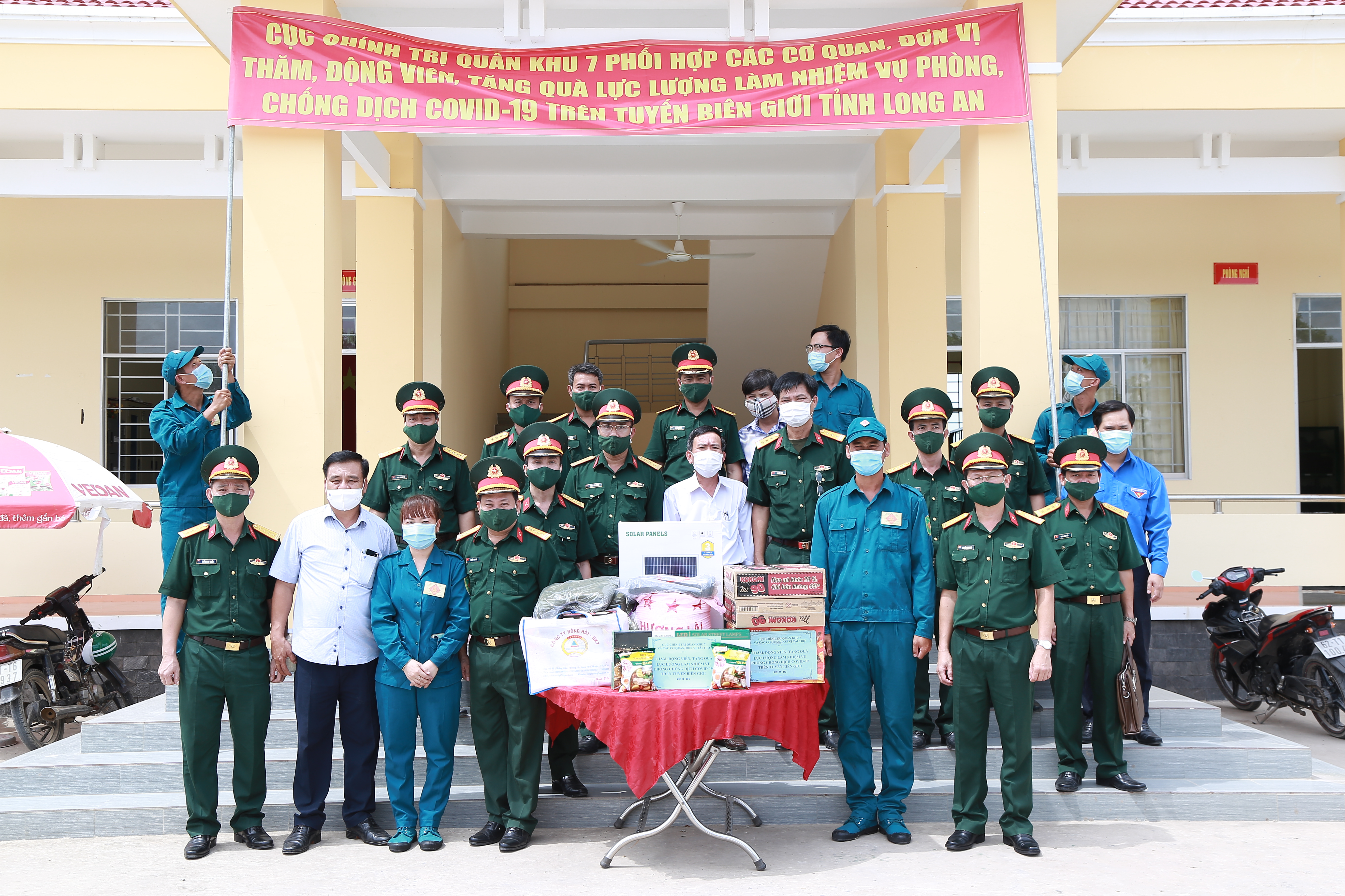 Đến thăm, động viên và trao tặng các trang thiết bị, nhu yếu phẩm trong sinh hoạt hàng ngày gồm: Máy lọc nước, quạt máy, đèn năng lượng mặt trời, đèn pin, màn tuyn, ủng cao su, thuốc diệt muỗi, mì tôm, gạo… với tổng kinh phí gần 600 triệu đồng cho cán bộ, chiến sĩ lực lượng dân quân đang làm nhiệm vụ tại các chốt phòng chống dịch bệnh; chốt dân quân biên giới trên địa bàn tỉnh Long An, Đại tá Nguyễn Như Trúc, Phó Chủ nhiệm Chính trị Quân khu 7 biểu dương những kết quả đạt được trong thời gian qua của cán bộ chiến sĩ nơi đây, đồng thời chia sẻ những khó khăn thách thức cũng như động viên các đồng chí luôn cố gắng, vượt qua khó khăn, nhận và hoàn thành xuất sắc mọi nhiệm vụ được giao.