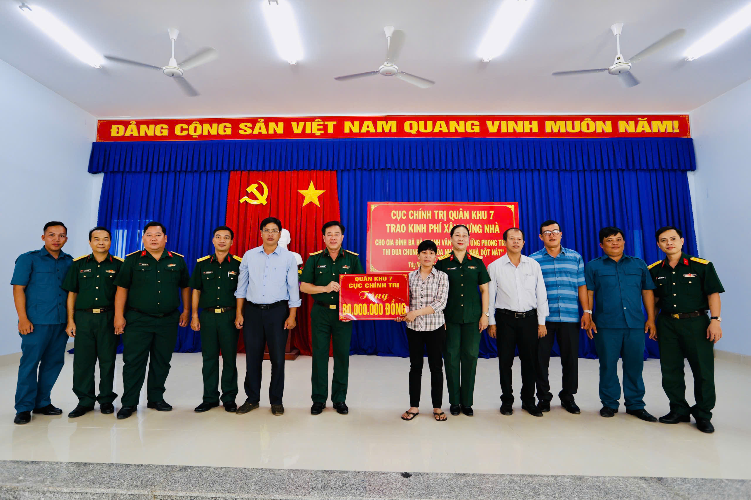 Trong dịp này, Cục Chính trị Quân khu 7 hỗ trợ kinh phí 80 triệu đồng xây tặng nhà cho gia đình bà Hà Thanh Vân. Đây là việc làm thiết thực thể hiện trách nhiệm và tình cảm của cán bộ, chiến sĩ Cục Chính trị Quân khu đối với Nhân dân trên địa bàn đóng quân.