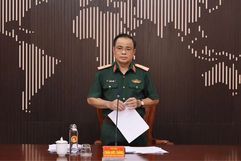 Thiếu tướng Trần Đức Thắng, Bí thư Đảng ủy Cục Chính trị, Phó Chủ nhiệm Chính trị Quân khu 7 chủ trì hội nghị.