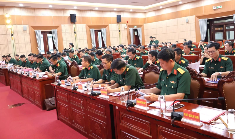 Đại biểu và cán bộ tuyên huấn các cơ quan, đơn vị của Quân khu dự hội nghị, tập trung theo dõi và nghiên cứu các nội dung chương trình.