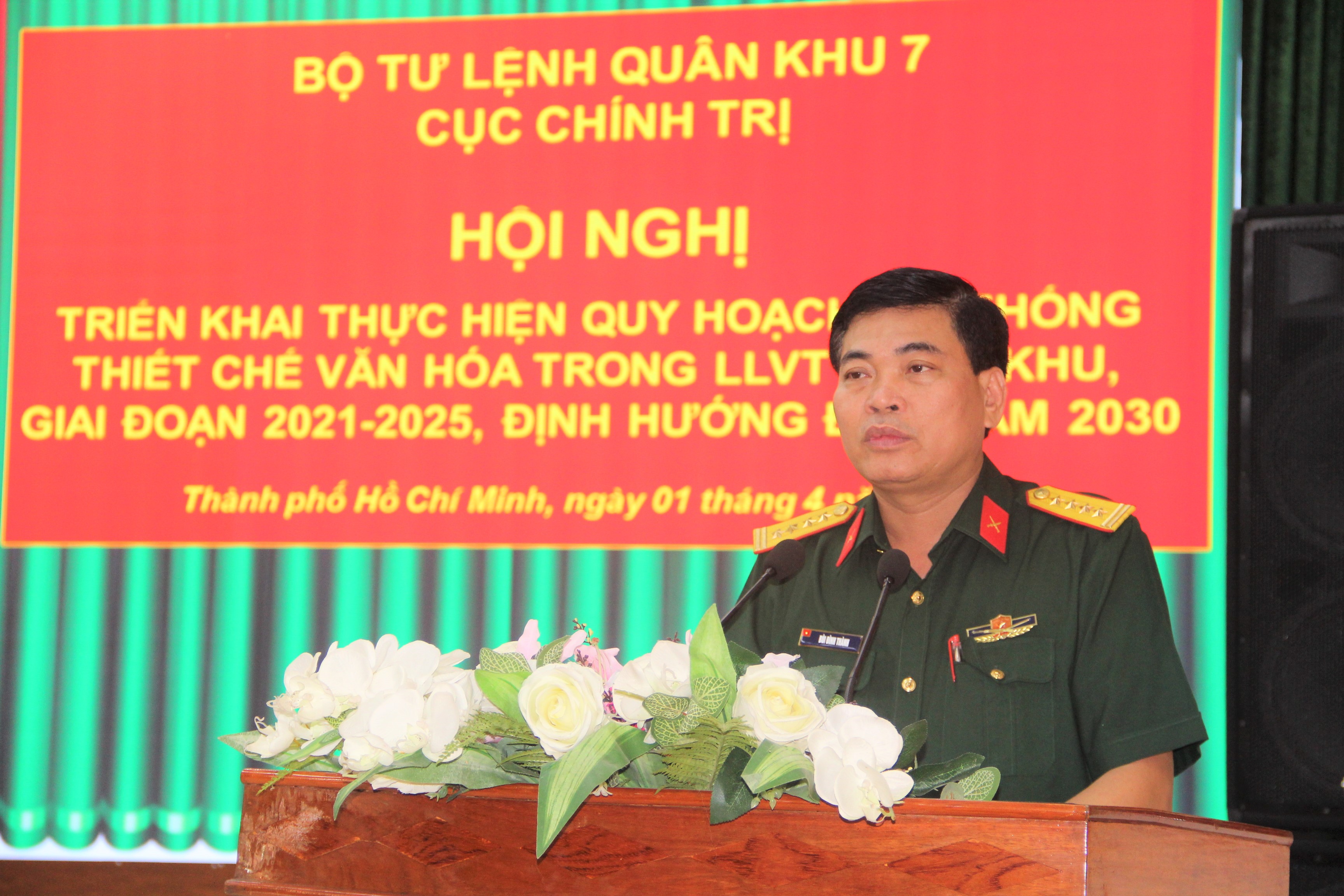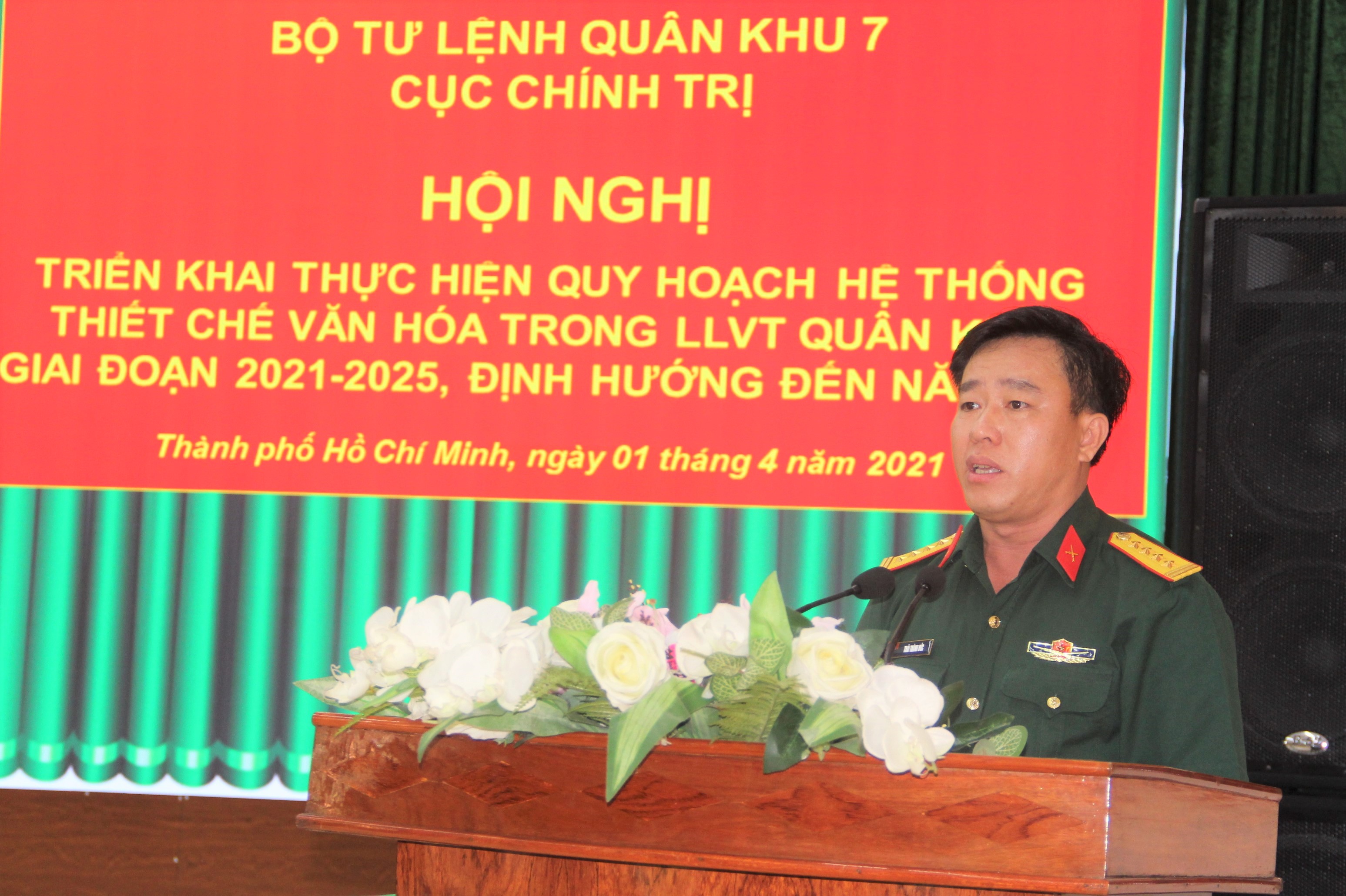 Tại hội nghị, Cục Chính trị Quân khu 7 đã triển khai kế hoạch thực hiện Quy hoạch hệ thống Thiết chế văn hóa trong LLVT Quân khu giai đoạn 2021-2025, định hướng đến năm 2030 bao gồm: Nhà Văn hóa; hệ thống đội chiếu phim; hệ thống thư viện; hệ thống phòng Hồ Chí Minh; hệ thống phòng sinh hoạt chung; hệ thống Nhà truyền thống, phòng truyền thống; hệ thống phòng đọc; Đoàn Văn công Quân khu và Bảo tàng Quân khu, Bảo tàng chiến dịch Hồ Chí Minh.