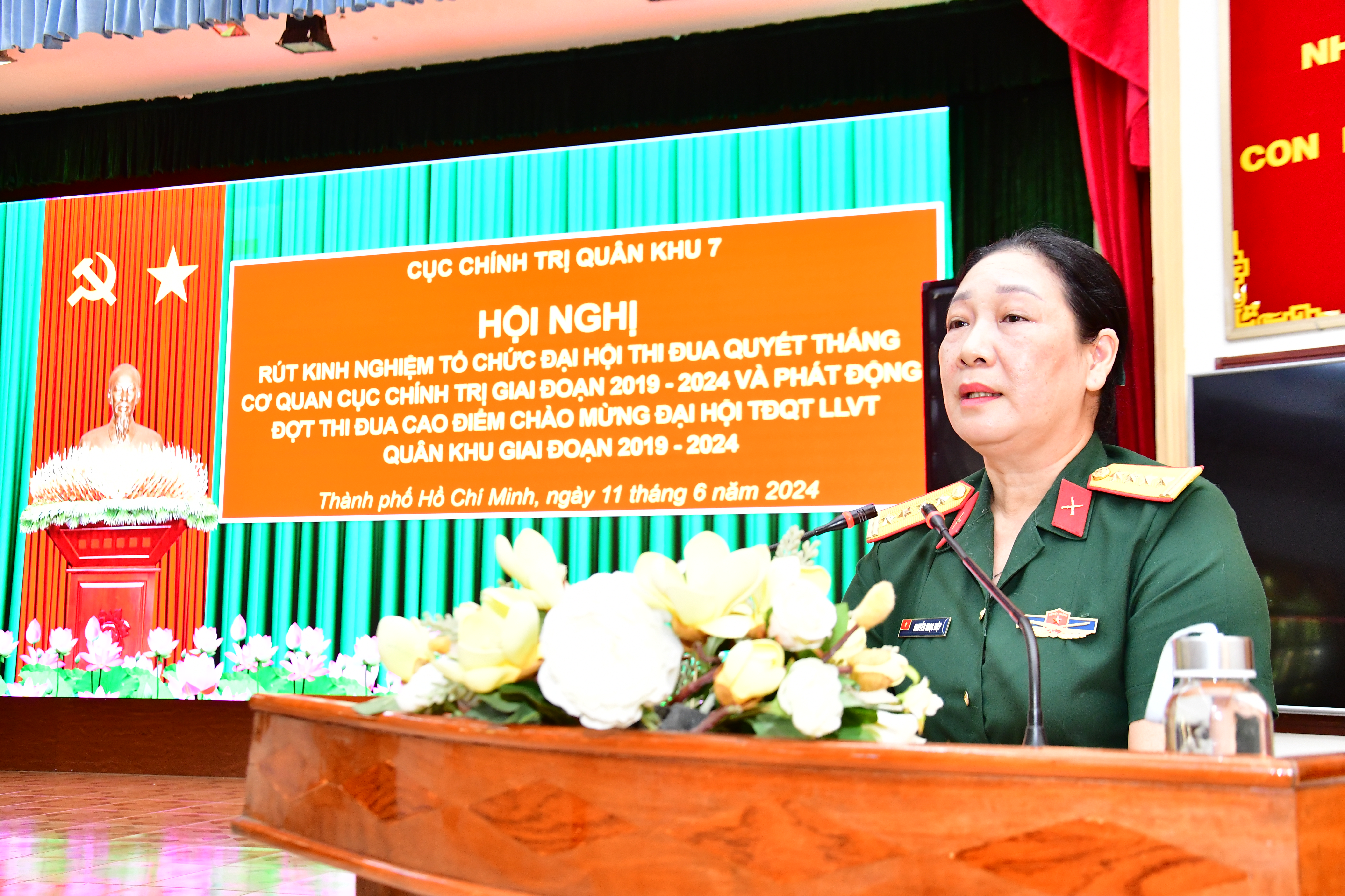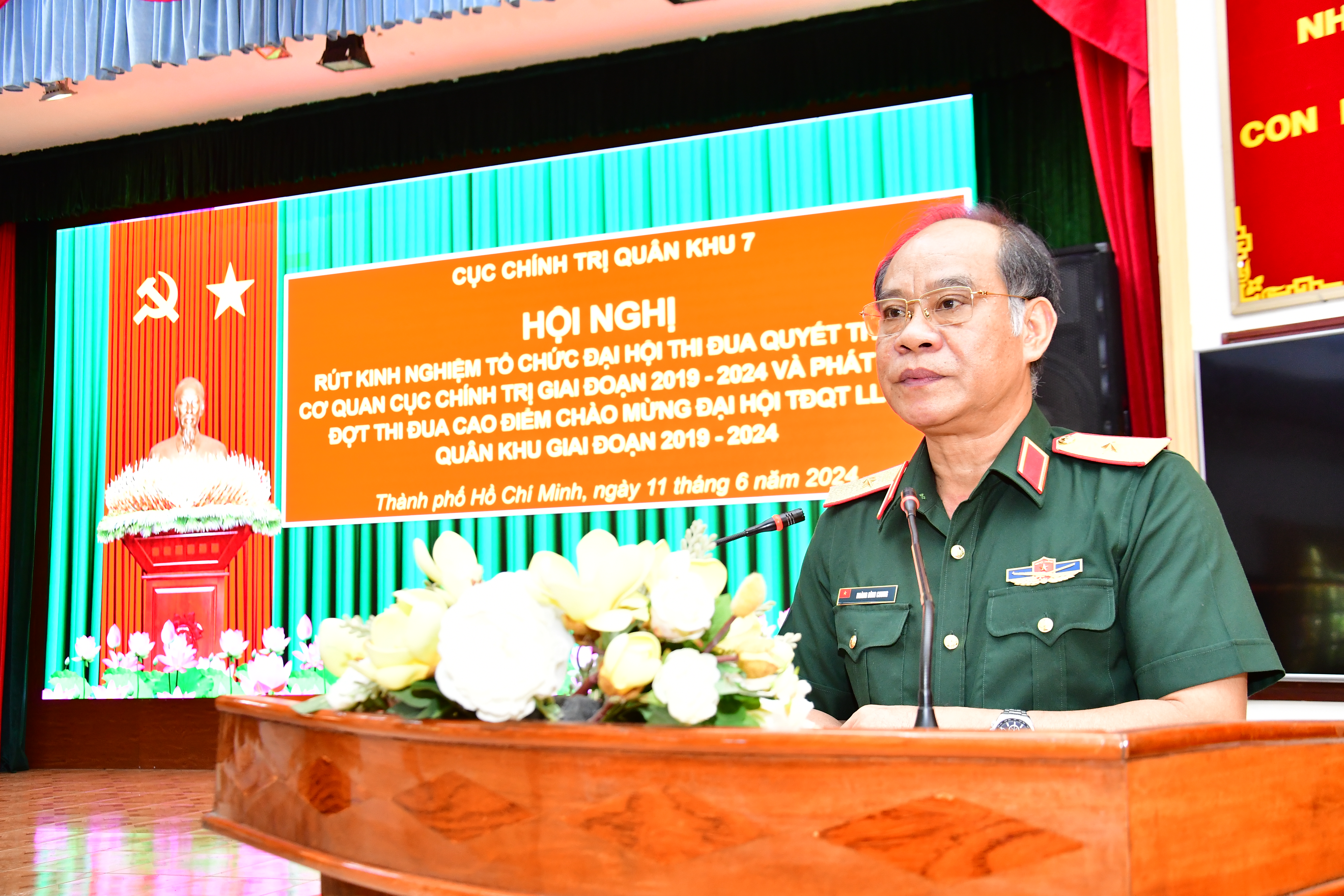 Đồng chí Chủ nhiệm Chính trị Quân khu đề nghị cấp ủy, chỉ huy và toàn thể cán bộ, nhân viên, chiến sĩ trong cơ quan Cục Chính trị quán triệt sâu sắc các nội dung, chỉ tiêu của đợt thi đua, phát huy phẩm chất cao đẹp “Bộ đội Cụ Hồ”, truyền thống “Trung thành kiên định, chủ động sáng tạo, nguyên tắc dân chủ, đoàn kết quyết thắng” của Cục Chính trị Quân khu 7 anh hùng; đề cao tinh thần, trách nhiệm, đoàn kết thống nhất, chủ động sáng tạo, ra sức thi đua, nỗ lực đóng góp nhiều nhất, hiệu quả nhất sức lực, trí tuệ, tài năng của mình, thực hiện thắng lợi các nội dung, chỉ tiêu thi đua.
