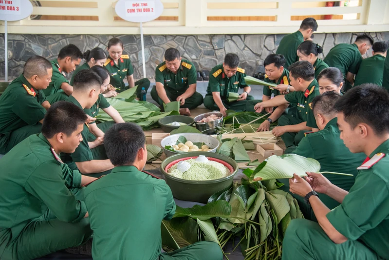 Hội thi gói, nấu bánh chưng: Đây không chỉ là hoạt động giàu ý nghĩa mỗi dịp Tết đến, xuân về, mà còn góp phần giáo dục cán bộ, chiến sĩ trân trọng và gìn giữ bản sắc văn hóa dân tộc, bồi đắp tình đồng chí, đồng đội. Tham gia hội thi gói, nấu bánh chưng lần này có 3 đội gồm: Cụm thi đua 1, Cụm thi đua 2 và Cụm thi đua 3 thuộc các cơ quan, đơn vị trong Cục Chính trị. Trong thời gian quy định, mỗi đội thi gói và nấu bánh chưng, đảm bảo yêu cầu chất lượng, đúng kỹ thuật, hình thức đẹp mắt. Sau đó, các đội sẽ tiến hành trưng bày và thuyết minh về ý nghĩa của mâm cỗ và bánh chưng trong văn hóa truyền thống. Với tinh thần “Đẹp về hình thức, ngon về chất lượng, thắm đượm tình đồng đội”, những chiếc bánh chưng được dâng lên bàn thờ Tổ quốc, làm phong phú thêm mâm cỗ ngày Tết.