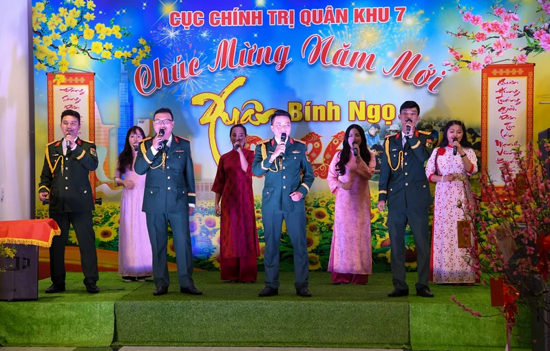Đêm giao lưu văn hóa, văn nghệ chào đón năm mới là điểm nhấn trong hoạt động đón xuân của Cục Chính trị Quân khu. Đón giao thừa Xuân Bính Ngọ 2026, cán bộ, chiến sĩ đã mang đến nhiều tiết mục đặc sắc ca ngợi Tổ quốc, Đảng quang vinh, Bác Hồ vĩ đại, sức sống của mùa xuân. Bên cạnh đó còn có các hoạt động như: Hái hoa dân chủ; Thủ trưởng Bộ Tư lệnh Quân khu, Thủ trưởng Cục Chính trị Quân khu chúc Tết, lì xì đầu năm mới; ông đồ tặng chữ đầu năm … Đêm giao lưu văn hóa, văn nghệ mừng Đảng, mừng xuân đã tạo không khí vui tươi, phấn khởi, mang đến cho cán bộ, chiến sĩ không gian sôi động, ấm áp, ngập tràn hương sắc của mùa xuân mới. Qua đó, động viên cán bộ, chiến sĩ nêu cao tinh thần đoàn kết, dân chủ, kỷ cương, sáng tạo, quyết thắng, phấn đấu hoàn thành xuất sắc mọi nhiệm vụ được giao.