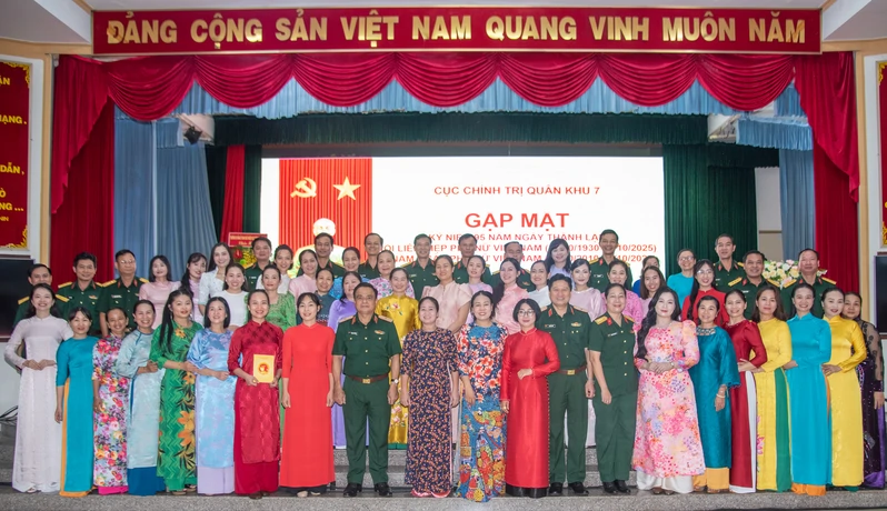 (QK7 Online) - Ngày 17 tháng 10, Cục Chính trị Quân khu tổ chức gặp mặt kỷ niệm 95 năm Ngày thành lập Hội Liên hiệp Phụ nữ Việt Nam (20/10/1930 – 20/10/2025) và 15 năm Ngày Phụ nữ Việt Nam (20/10/2010 – 20/10/2025). Dự họp mặt có Thiếu tướng Phạm Anh Tuấn, Ủy viên Ban Thường vụ Đảng ủy Quân khu, Chủ nhiệm Chính trị Quân khu cùng phu nhân; Thiếu tướng Trần Đức Thắng, Bí thư Đảng ủy Cục Chính trị, Phó Chủ nhiệm Chính trị Quân khu dự và phát biểu chúc mừng.