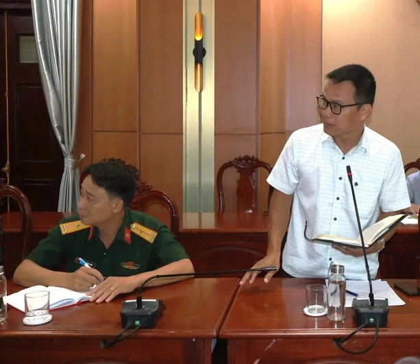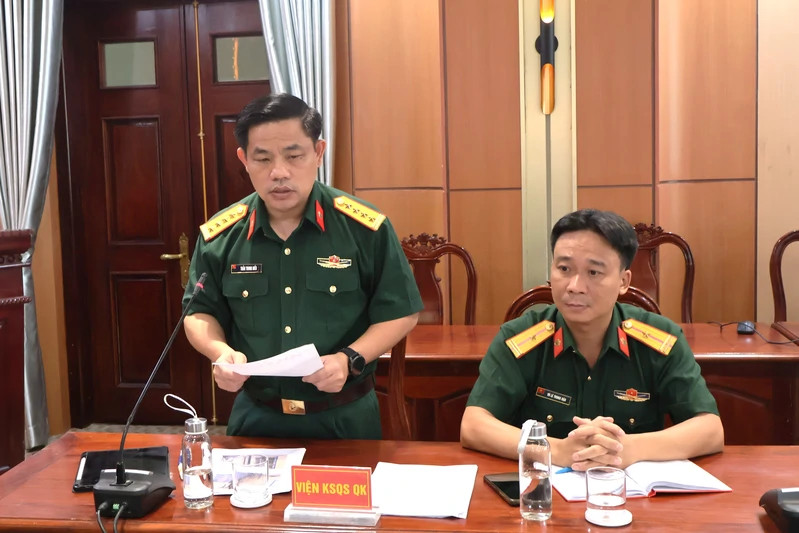 Đại tá Trần Trung Hiếu, Phó Viện trưởng Viện kiểm sát quân sự Quân khu phát biểu tại cuộc họp.