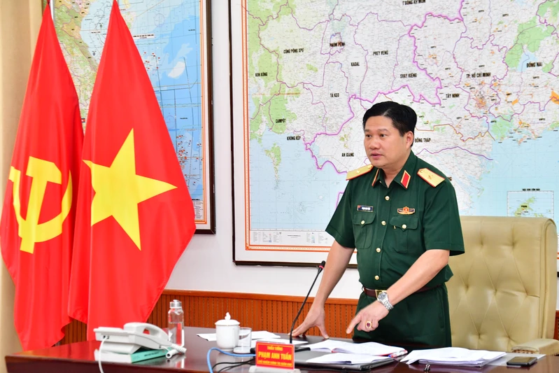 Thiếu tướng Phạm Anh Tuấn, Ủy viên Ban Thường vụ Đảng ủy Quân khu, Chủ nhiệm Chính trị Quân khu chủ trì hội nghị.