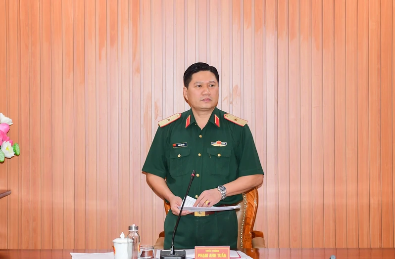 Thiếu tướng Phạm Anh Tuấn, Ủy viên Thường vụ Đảng ủy, Chủ nhiệm Chính trị Quân khu chủ trì hội nghị.