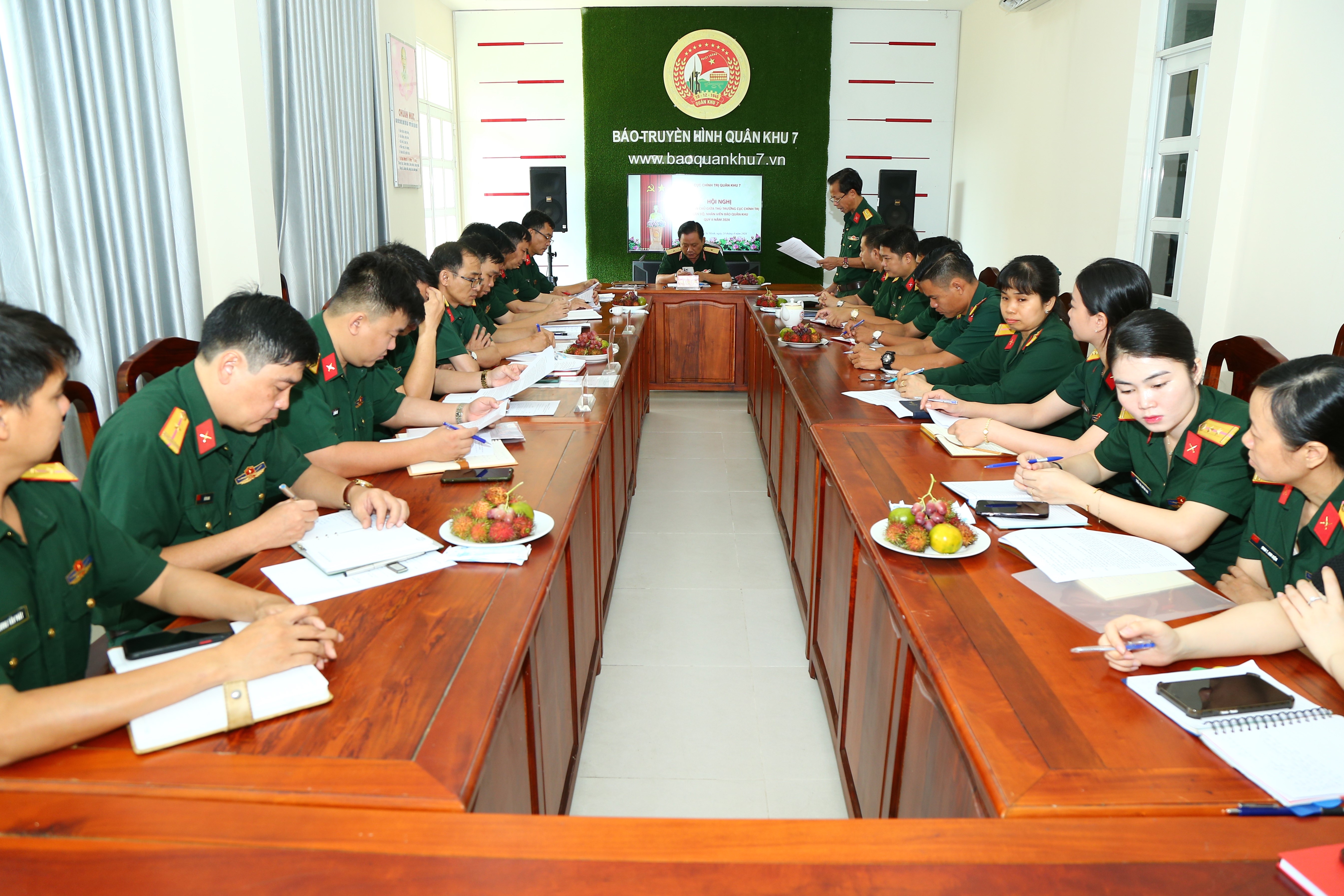 (QK7 Online) – Sáng 24/4, đoàn công tác Cục Chính trị Quân khu 7 do Thiếu tướng Trần Chí Tâm, Bí thư Đảng ủy Cục Chính trị, Phó Chủ nhiệm Chính trị Quân khu làm trưởng đoàn tổ chức đối thoại dân chủ với cán bộ, biên tập viên, phóng viên Báo Quân khu 7 quý II năm 2024.