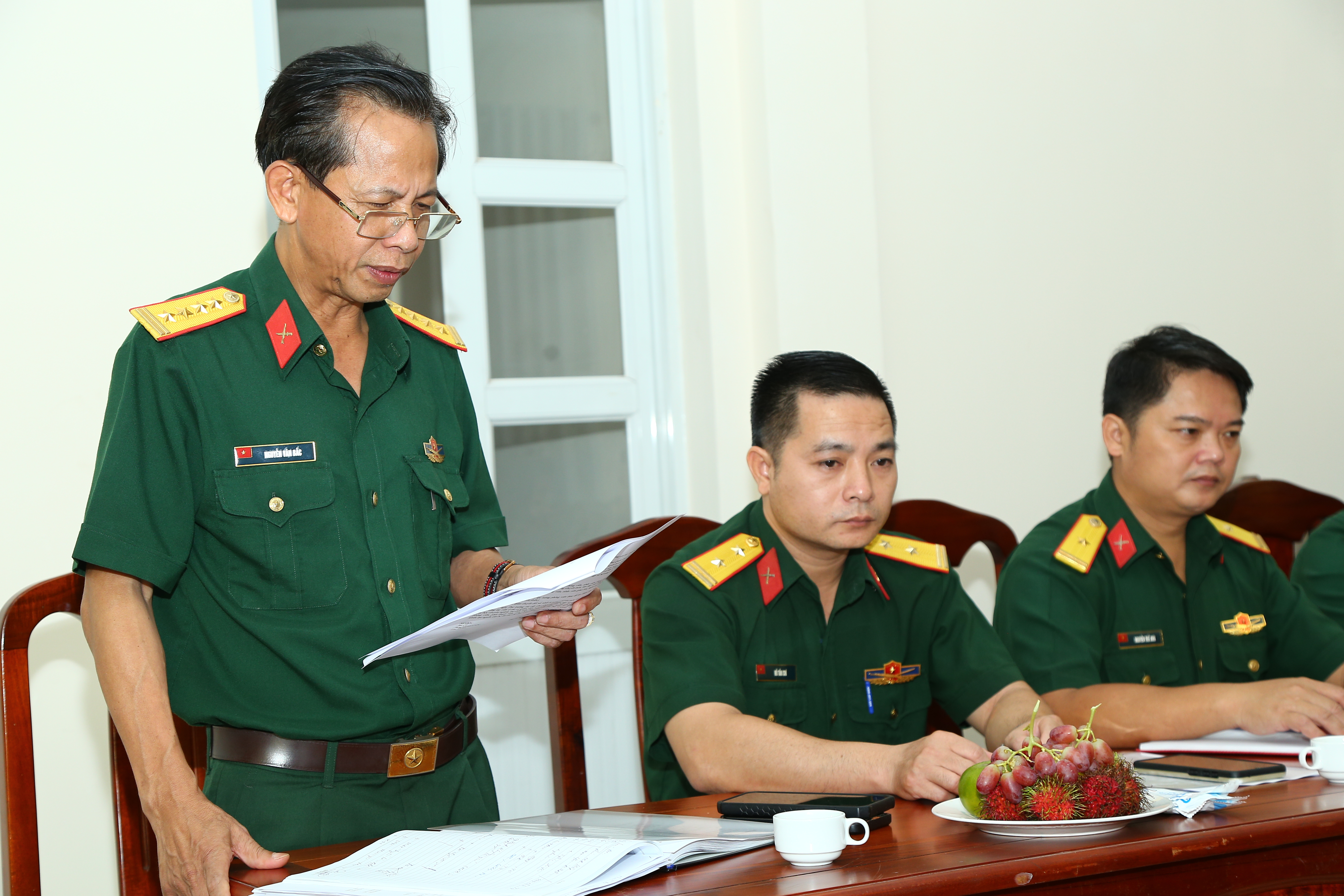 Đại tá Nguyễn Văn Bắc, Tổng Biên tập Báo Quân khu báo cáo những kết quả đơn vị đạt được trong thời gian qua.