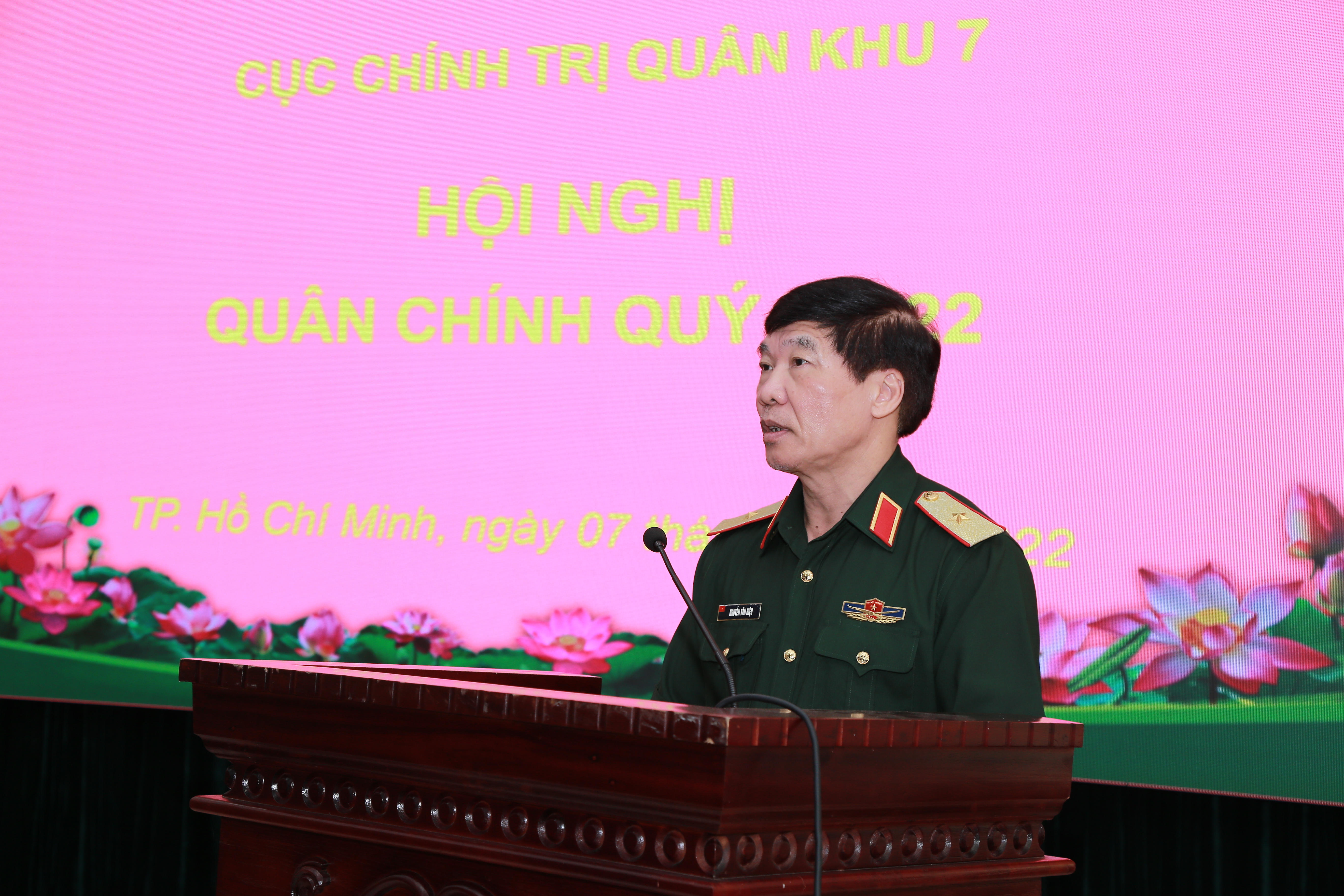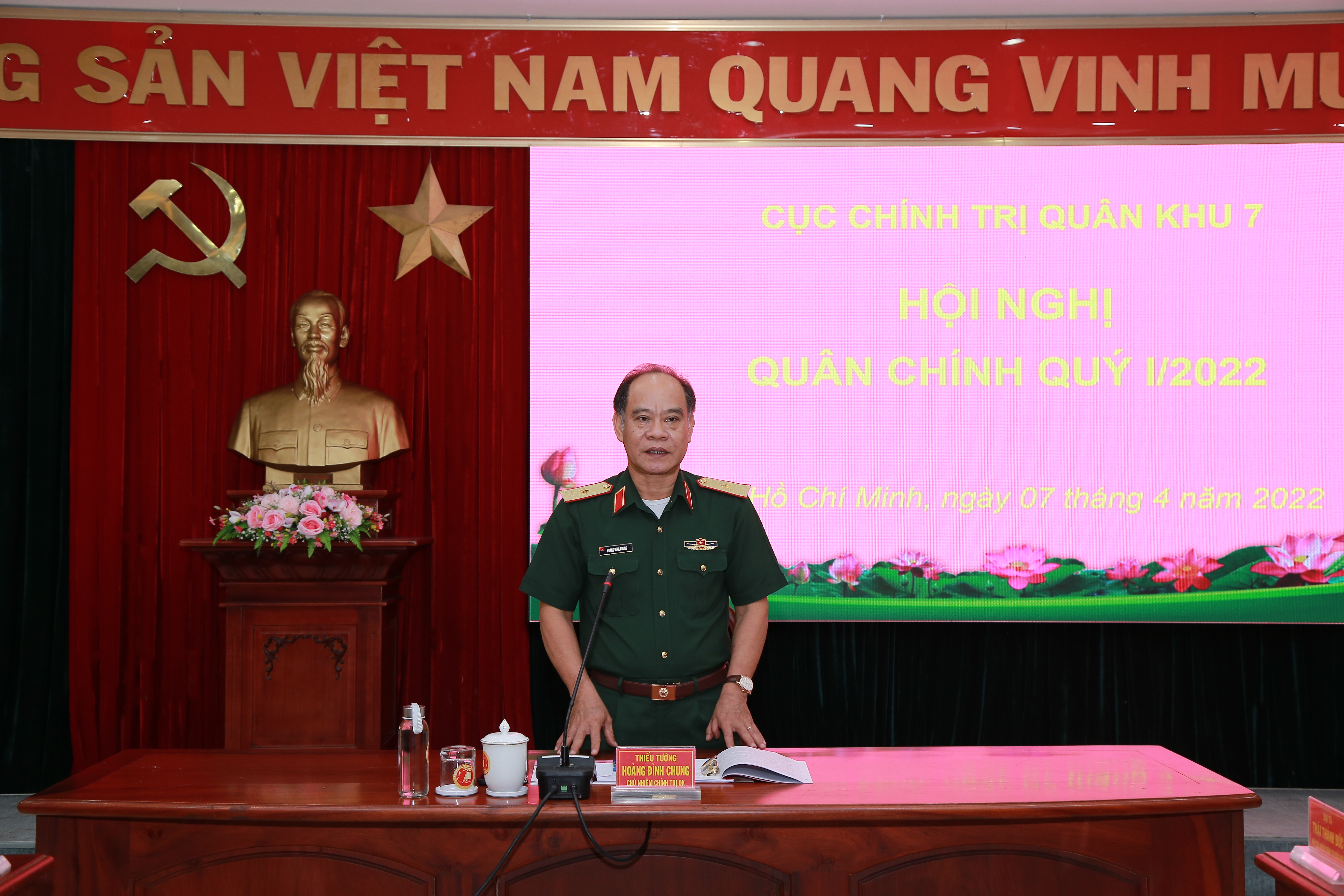 Kết luận hội nghị, Thiếu tướng Hoàng Đình Chung, Chủ nhiệm Chính trị Quân khu yêu cầu các cơ quan, đơn vị Cục Chính trị tiếp tục khắc phục những khó khăn còn vướng mắc; phát huy tính năng động, sáng tạo; đoàn kết, vững vàng, trách nhiệm, sâu sát, kịp thời trong xây dựng cơ quan, đơn vị vững mạnh toàn diện, hoàn thành thắng lợi mọi nhiệm vụ trên giao. Quan tâm, giáo dục, động viên, bồi dưỡng cán bộ, nhân viên theo kịp với nhiệm vụ; giữ vững nguyên tắc tập trung dân chủ kết hợp thực hiện hiện quả các mô hình của Quân khu.