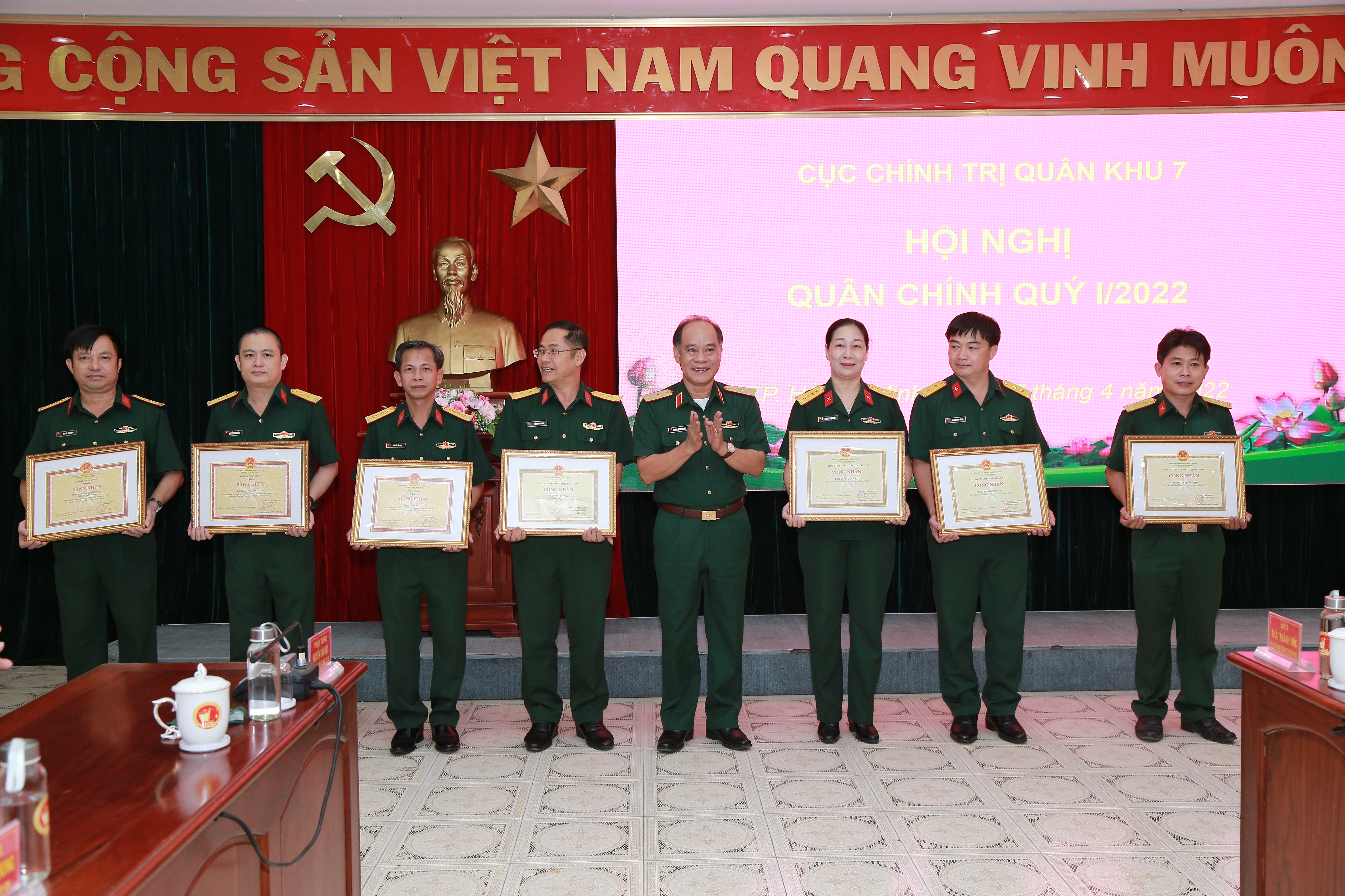 Dịp này, Đảng ủy, Ban Chủ nhiệm Cục Chính trị đã khen thưởng cho 19 tập thể và 7 cá nhân hoàn thành xuất sắc nhiệm vụ đợt thi đua cao điểm trong quý I và công nhận đơn vị “3 nhất” quý I năm 2022.