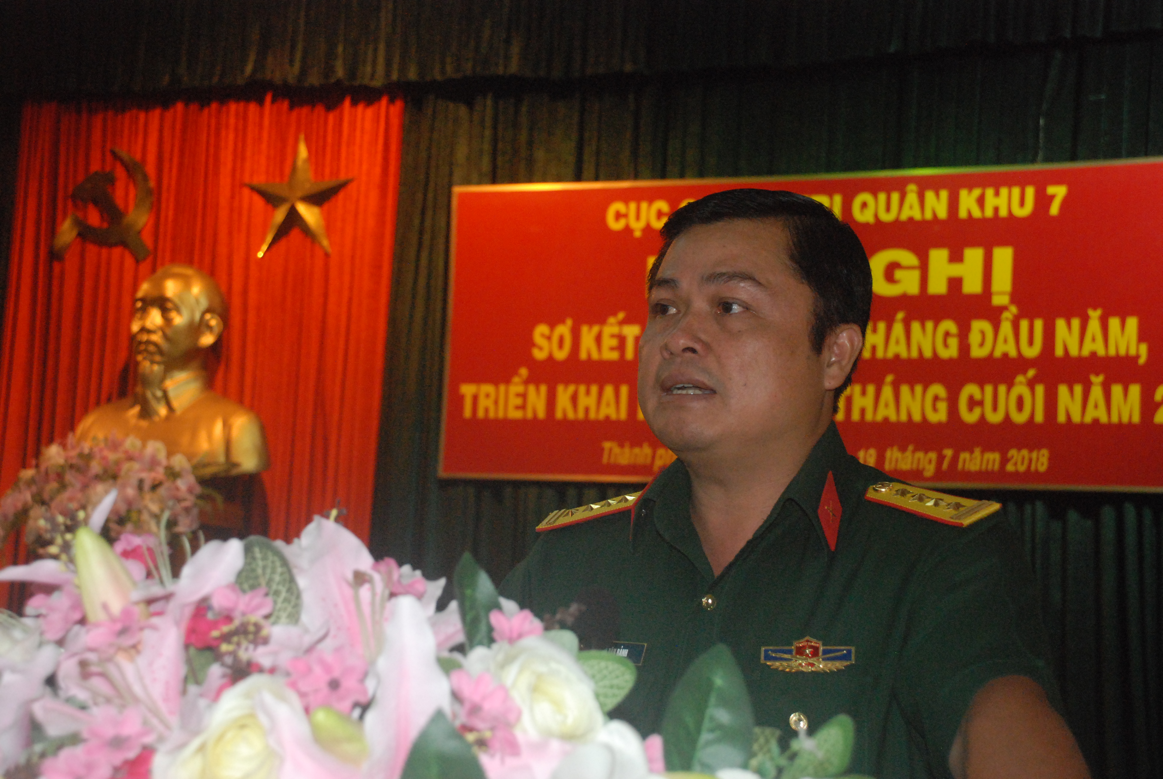 (QK7 Online) - Ngày 19-7-2018, Cục Chính trị Quân khu 7 tổ chức Hội nghị sơ kết thực hiện nhiệm vụ 6 tháng đầu năm và triển khai nhiệm vụ 6 tháng cuối năm 2018. Đại tá Đỗ Văn Bảnh, Chủ nhiệm Chính trị Quân khu chủ trì Hội nghị.