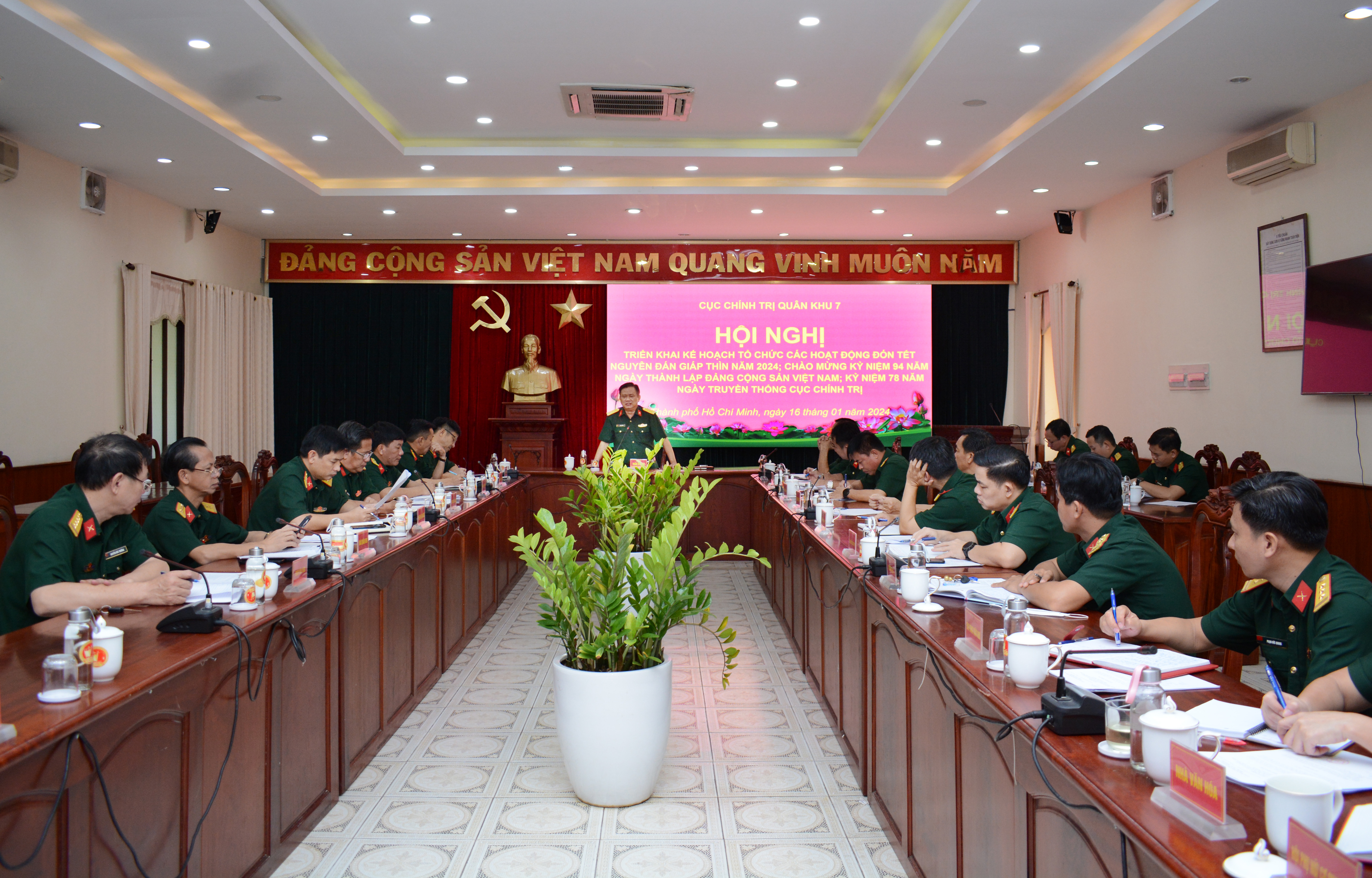 (QK7 Online) – Sáng 16 tháng 1, Đại tá Trần Chí Tâm, Phó Chủ nhiệm Chính trị Quân khu chủ trì hội nghị triển khai tổ chức các hoạt động đón Tết Nguyên đán Giáp Thìn 2024; chào mừng kỷ niệm 94 năm Ngày thành lập Đảng Cộng sản Việt Nam; kỷ niệm 78 năm Ngày truyền thống Cục Chính trị.