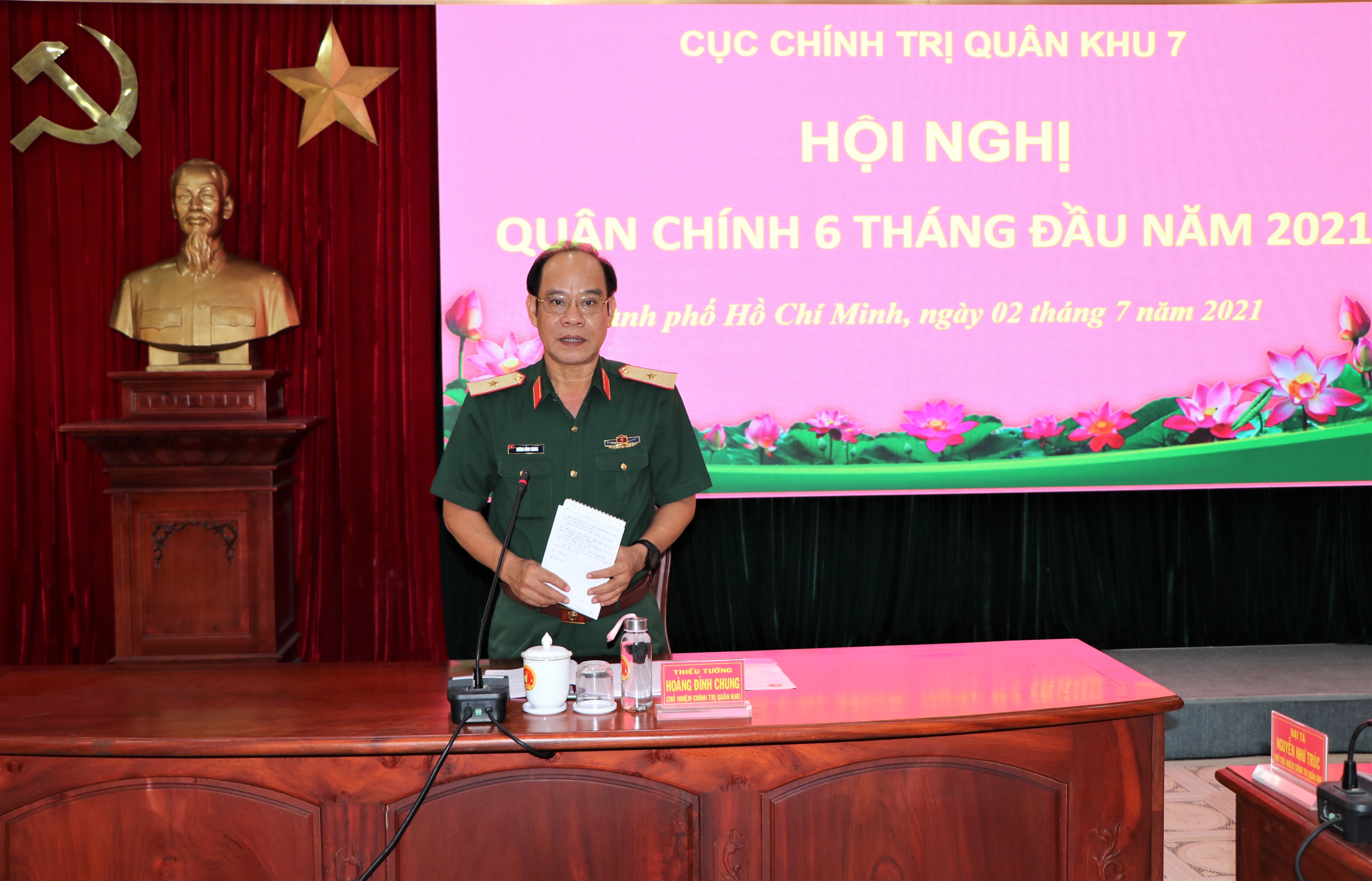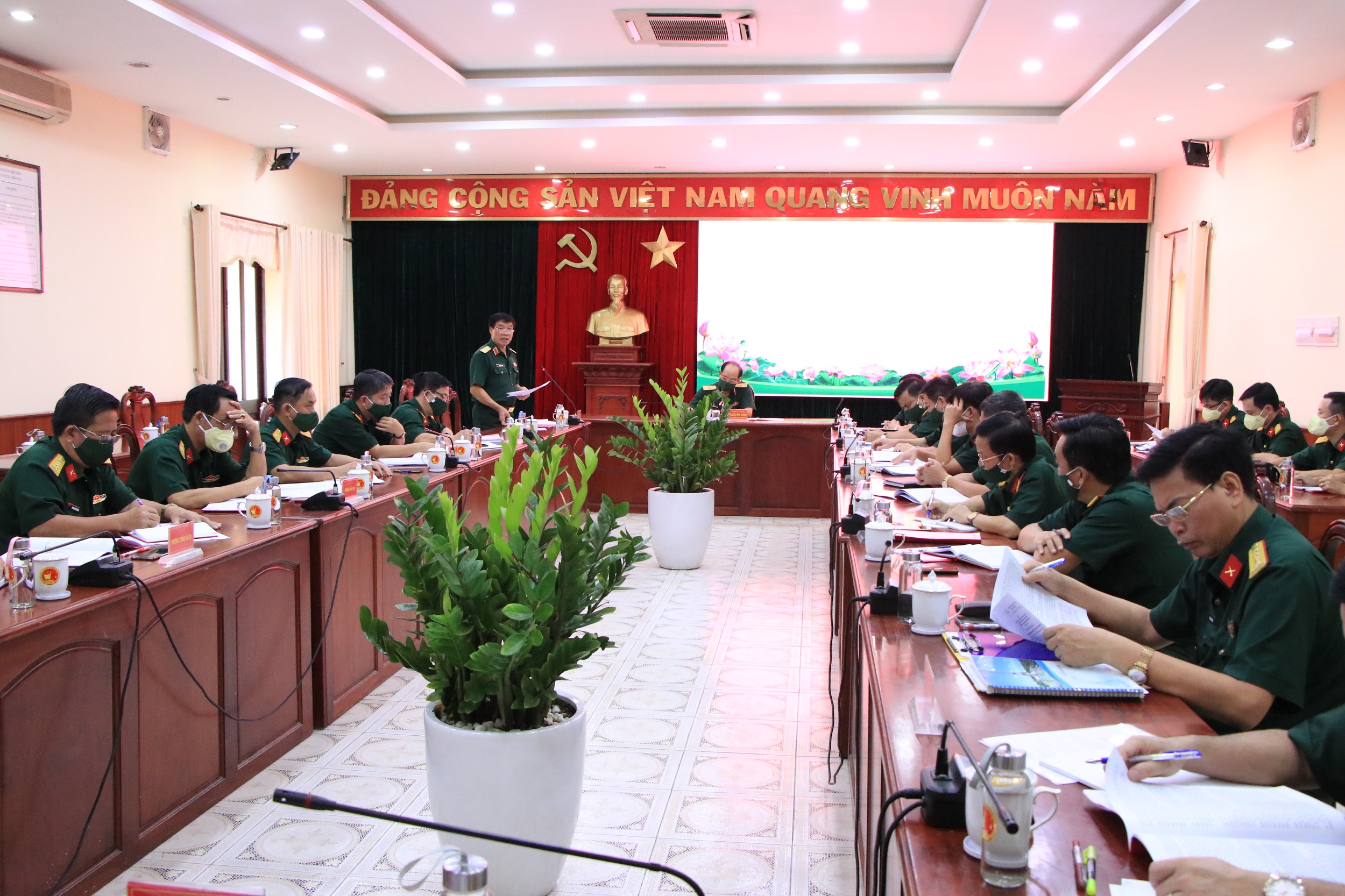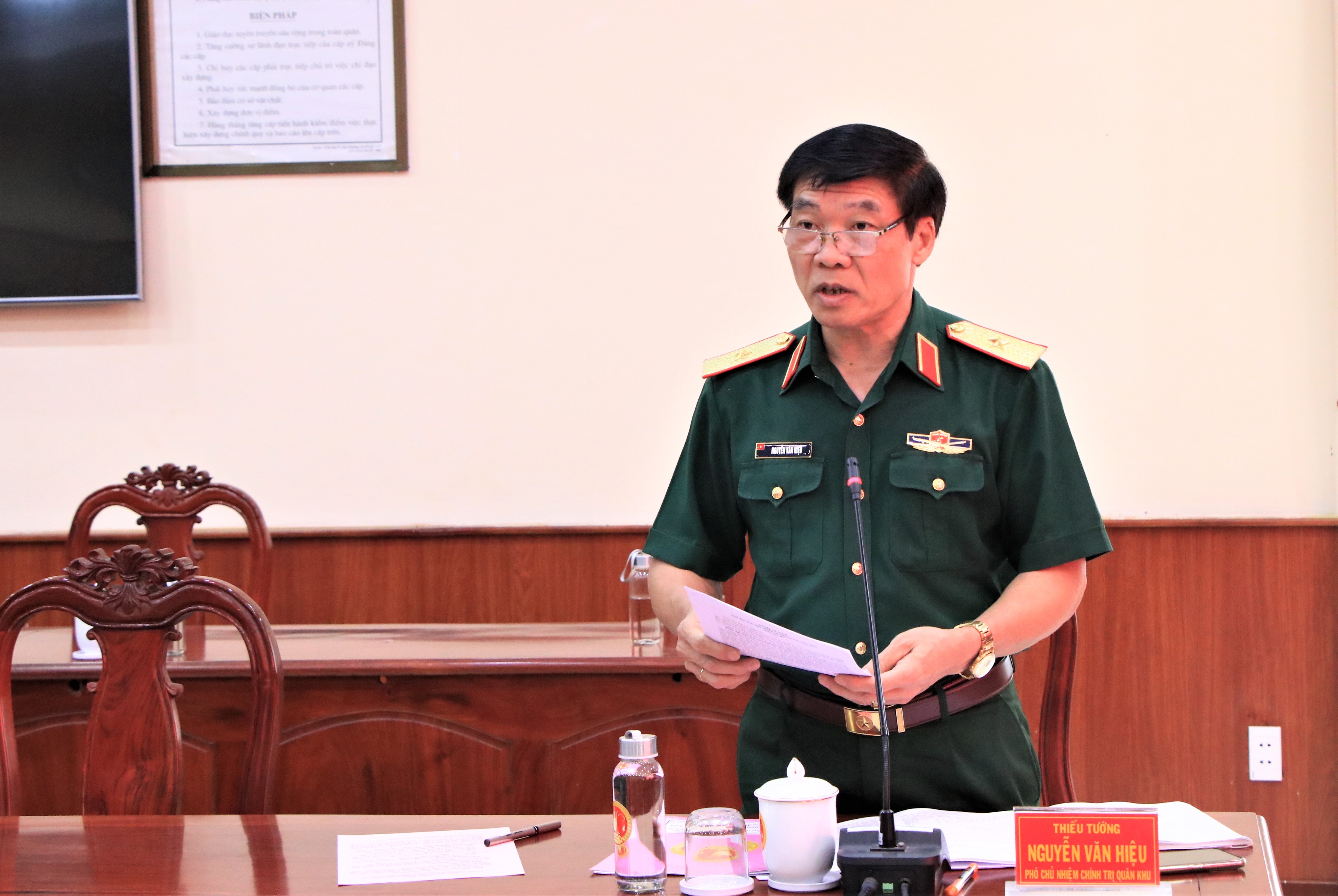 Thiếu tướng Hoàng Đình Chung, Chủ nhiệm Chính trị Quân khu chủ trì hội nghị.