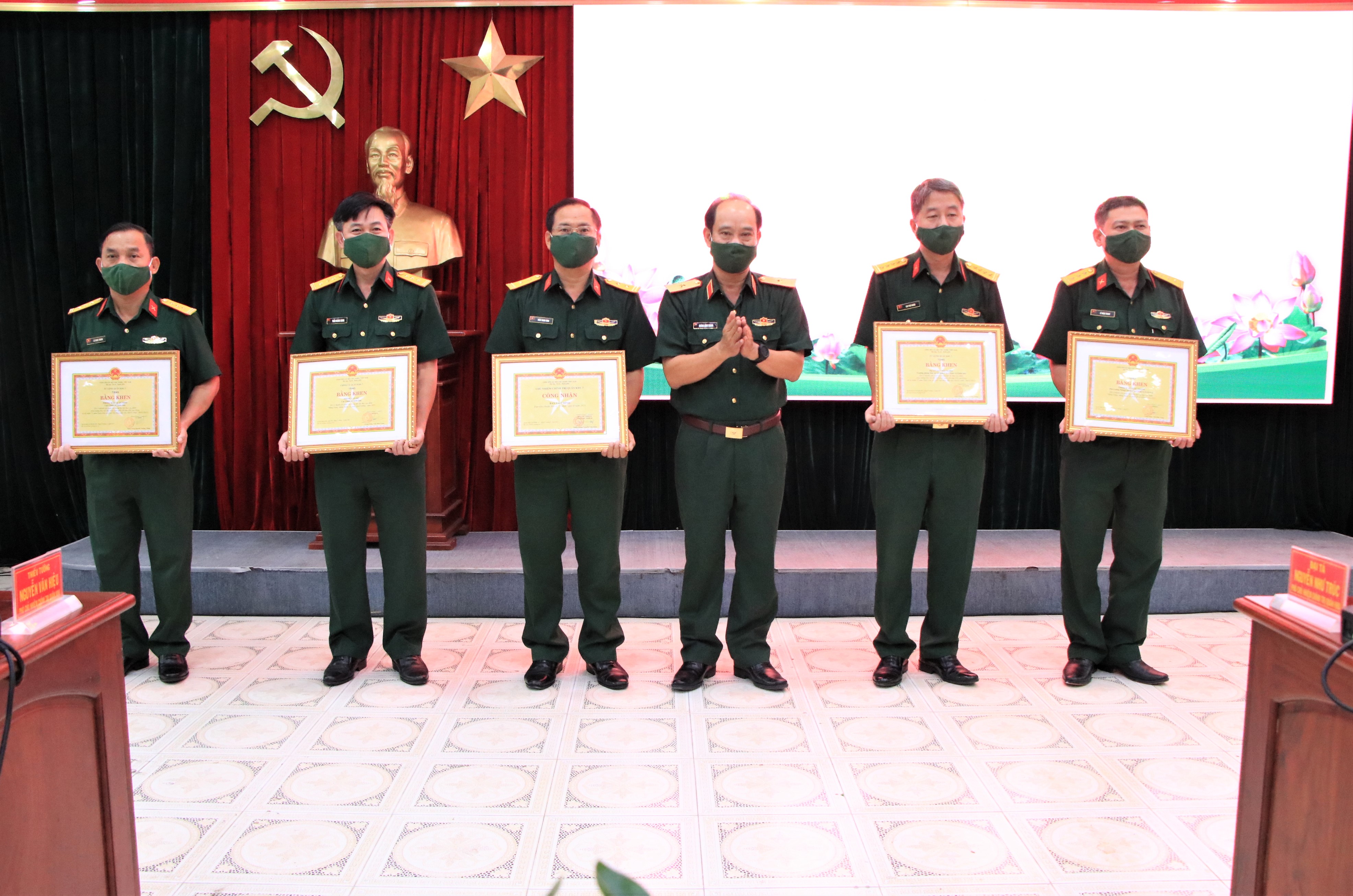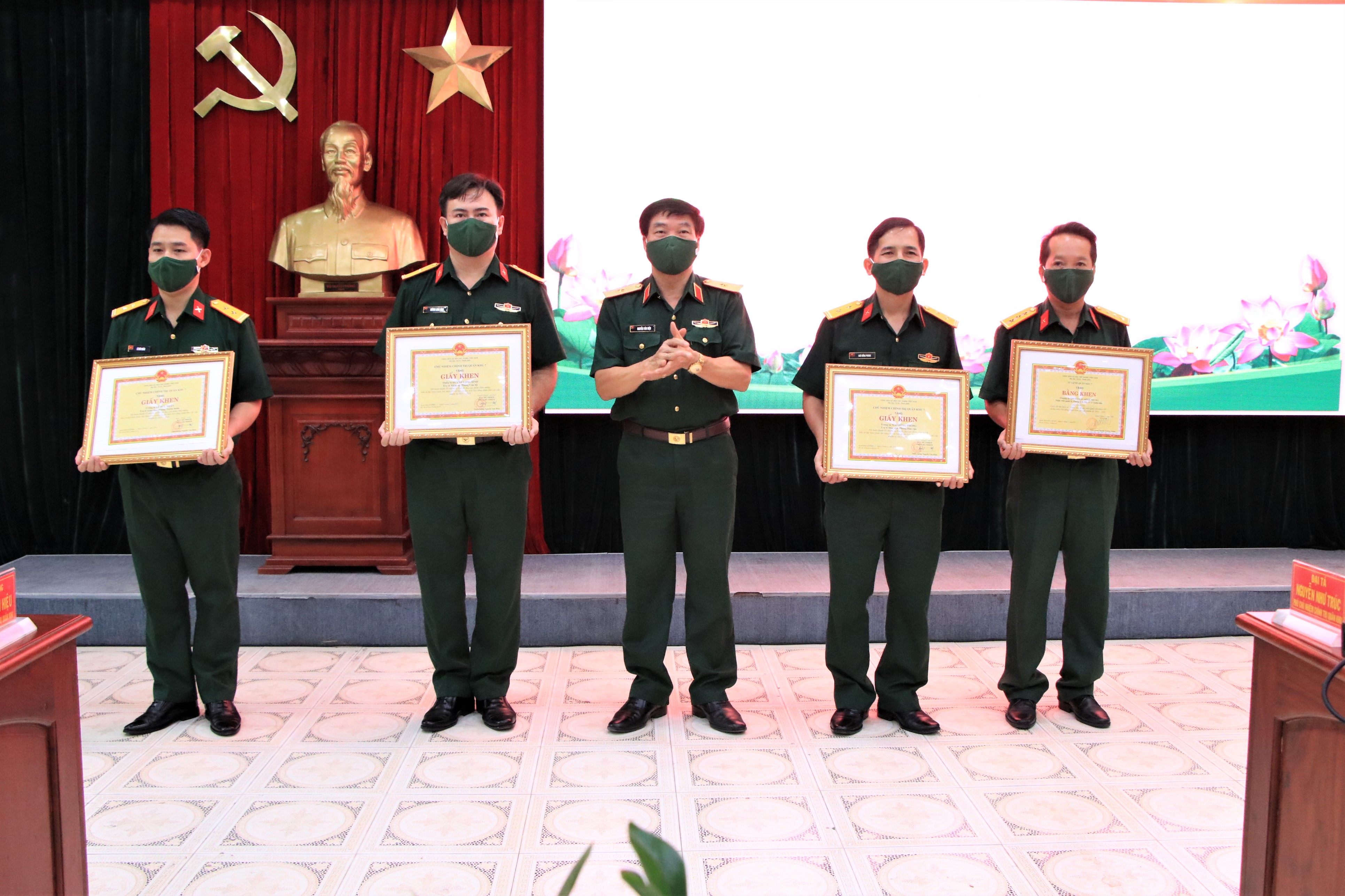 Tại hội nghị, nhiều tập thể, cá nhân được Bộ Tư lệnh Quân khu và Cục Chính trị khen thưởng đã có thành tích xuất sắc trong thực hiện các phong trào thi đua cao điểm và xây dựng “3 nhất” trong 6 tháng đầu năm 2021.