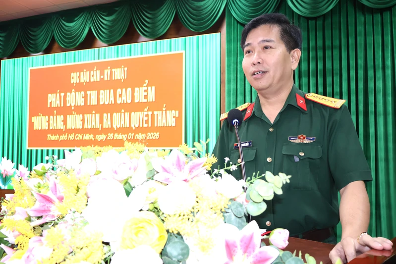 Đại tá Trần Văn Long, Phó Chính ủy Cục Hậu cần – Kỹ thuật Quân khu phát động Phong trào Thi đua Quyết thắng năm 2026.
