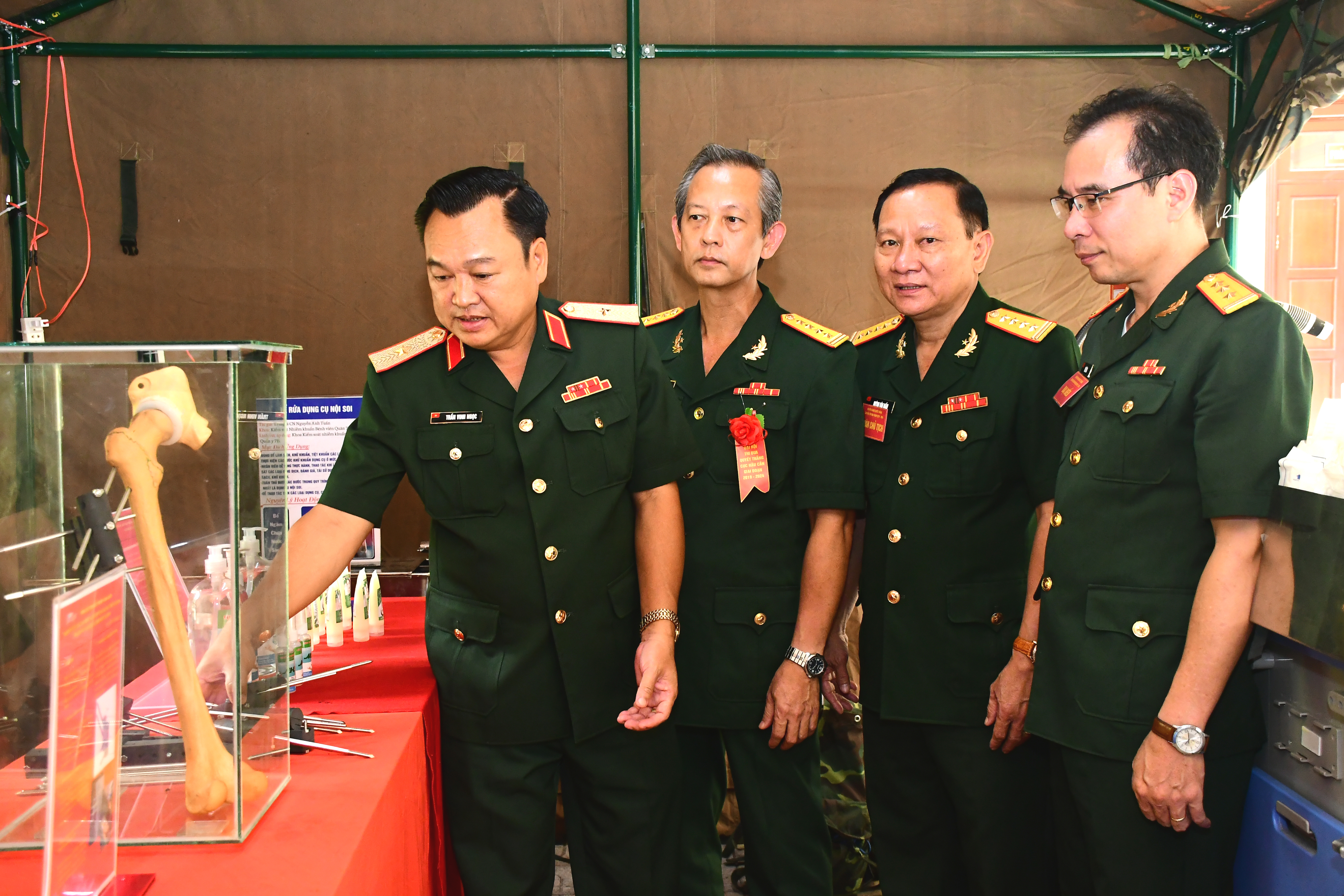 Thiếu tướng Trần Vinh Ngọc, Phó Chính ủy Quân khu và các đại biểu tham quan khu trưng bày tại Đại hội.
