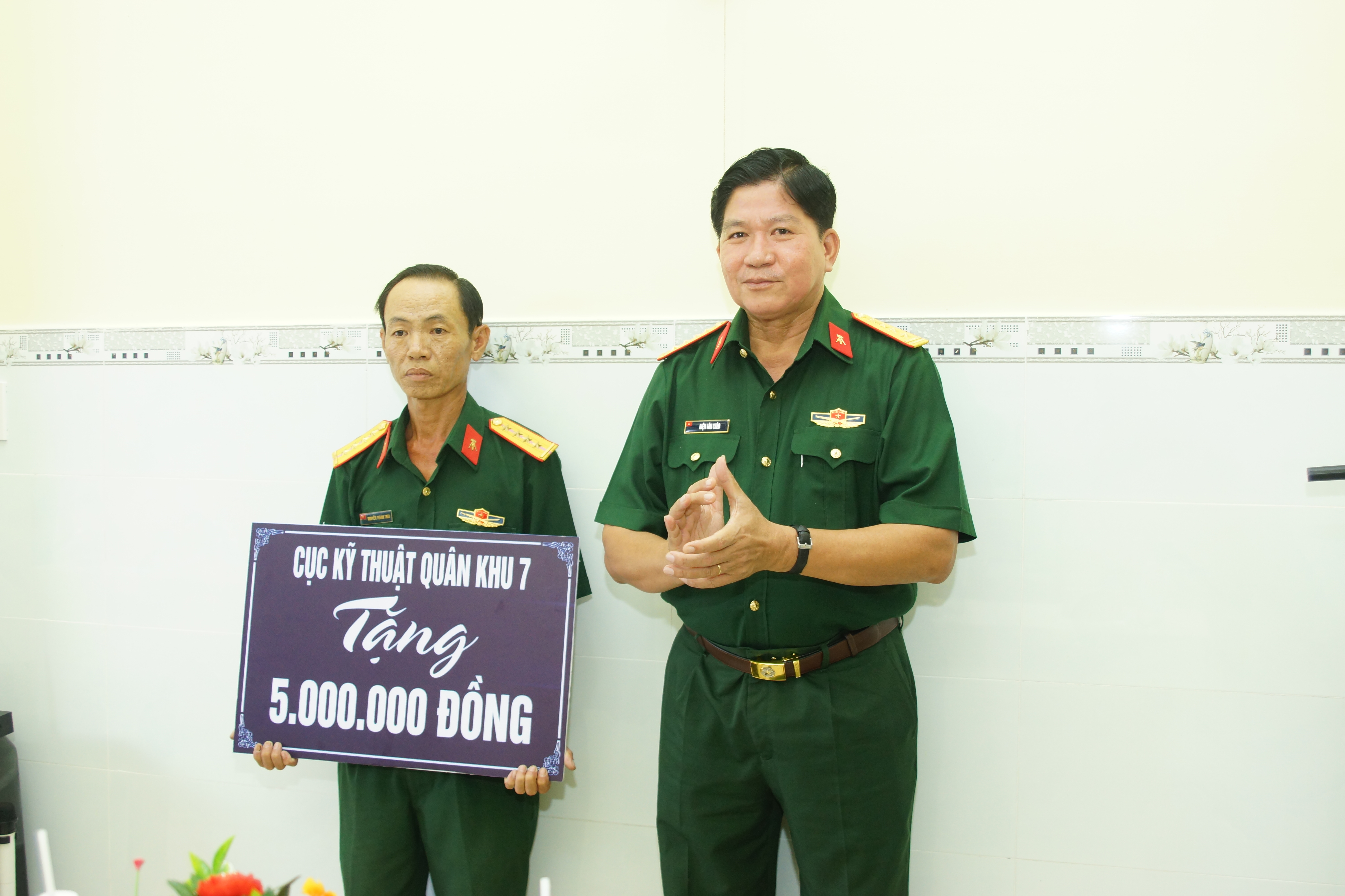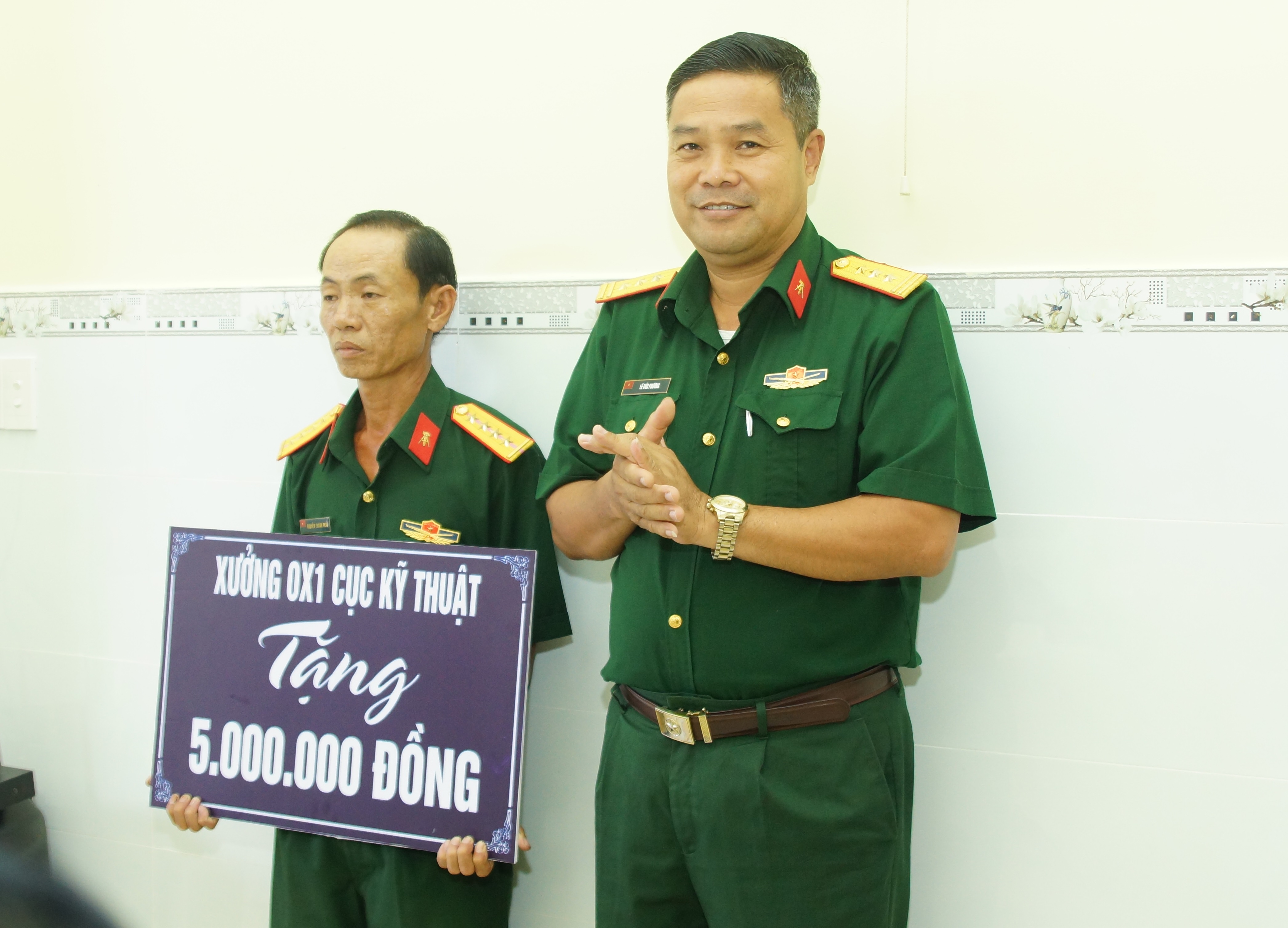 Dự lễ bàn giao nhà có Đại tá Biện Văn Chèo, Chính ủy Cục Kỹ thuật Quân khu; đại diện Xưởng OX1; đại diện cấp ủy, chính quyền xã Tân Thới Nhì, huyện Hóc Môn, Thành phố Hồ Chí Minh. Căn nhà được sửa chữa là nhà cấp 4 đã xuống cấp, trên diện tích sử dụng 34,6m2 tại số 3/524B ấp Nhị Tân, xã Tân Thới Nhì, huyện Hóc Môn. Tổng kinh phí sửa chữa là 150 triệu đồng, trong đó các đơn vị trong Cục Kỹ thuật hỗ trợ 80 triệu đồng, phần còn lại của gia đình đóng góp thêm. Cán bộ, chiến sĩ Xưởng OX1 giúp đỡ ngày công vận chuyển vật liệu phục vụ sửa chữa.