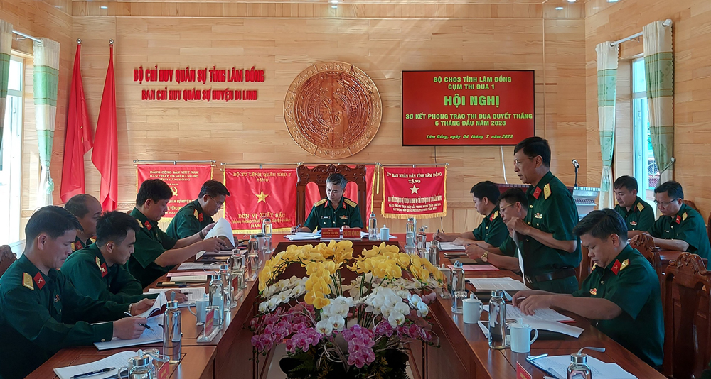 (QK7 Online) - Sáng 4-7, tại Ban CHQS huyện Di Linh, cụm thi đua 1, Bộ CHQS tỉnh Lâm Đồng sơ kết Phong trào Thi đua Quyết thắng 6 tháng đầu năm 2023.