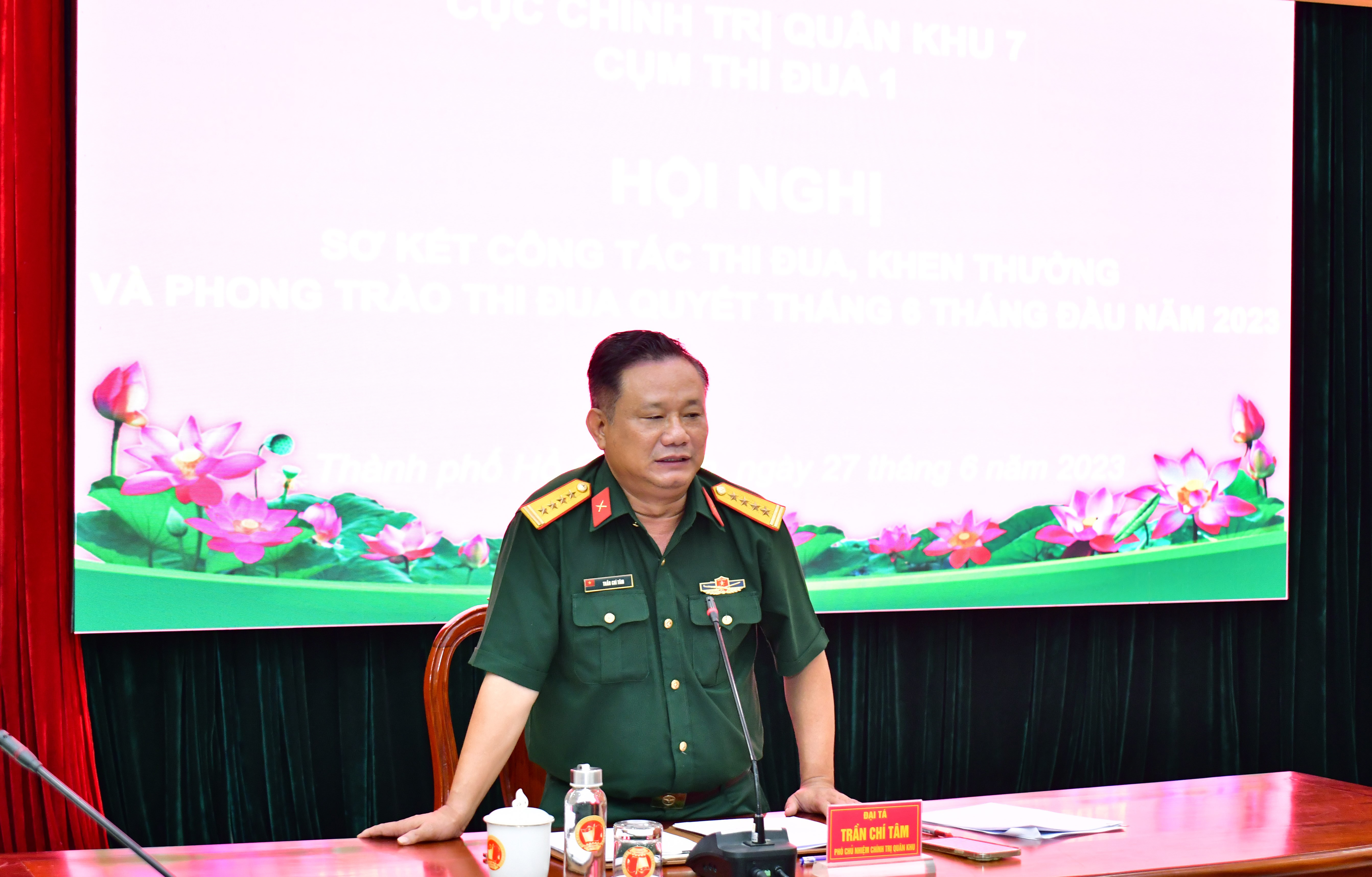Phát biểu chỉ đạo tại hội nghị, Đại tá Trần Chí Tâm, Bí thư Đảng ủy Cục Chính trị, Phó Chủ nhiệm Chính trị Quân khu 7, Chủ tịch Hội đồng Thi đua khen thưởng Cục Chính trị Quân khu biểu dương các cơ quan Cụm thi đua 1 đã hoàn thành xuất sắc nhiệm vụ chính trị trong 6 tháng đầu năm 2023.