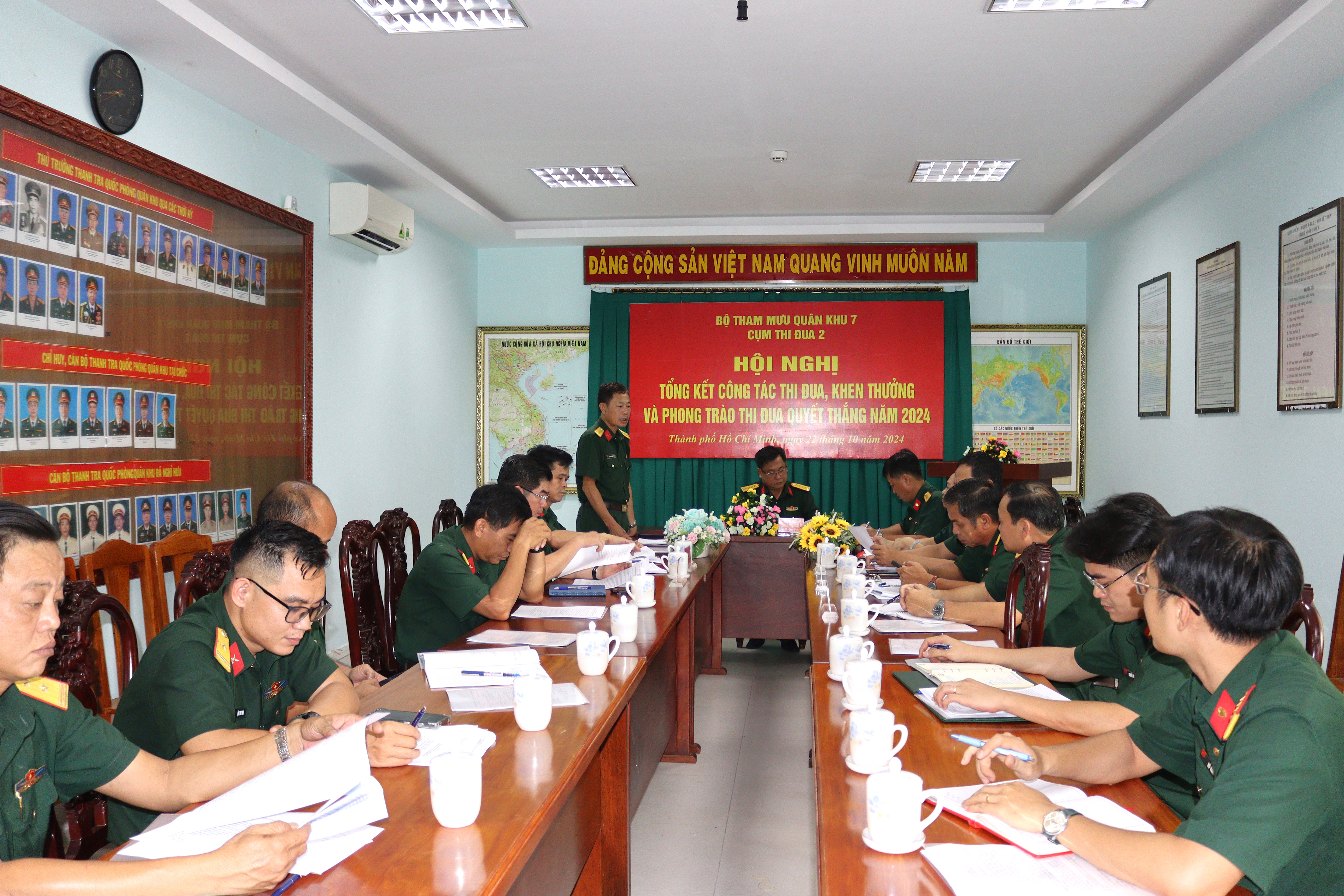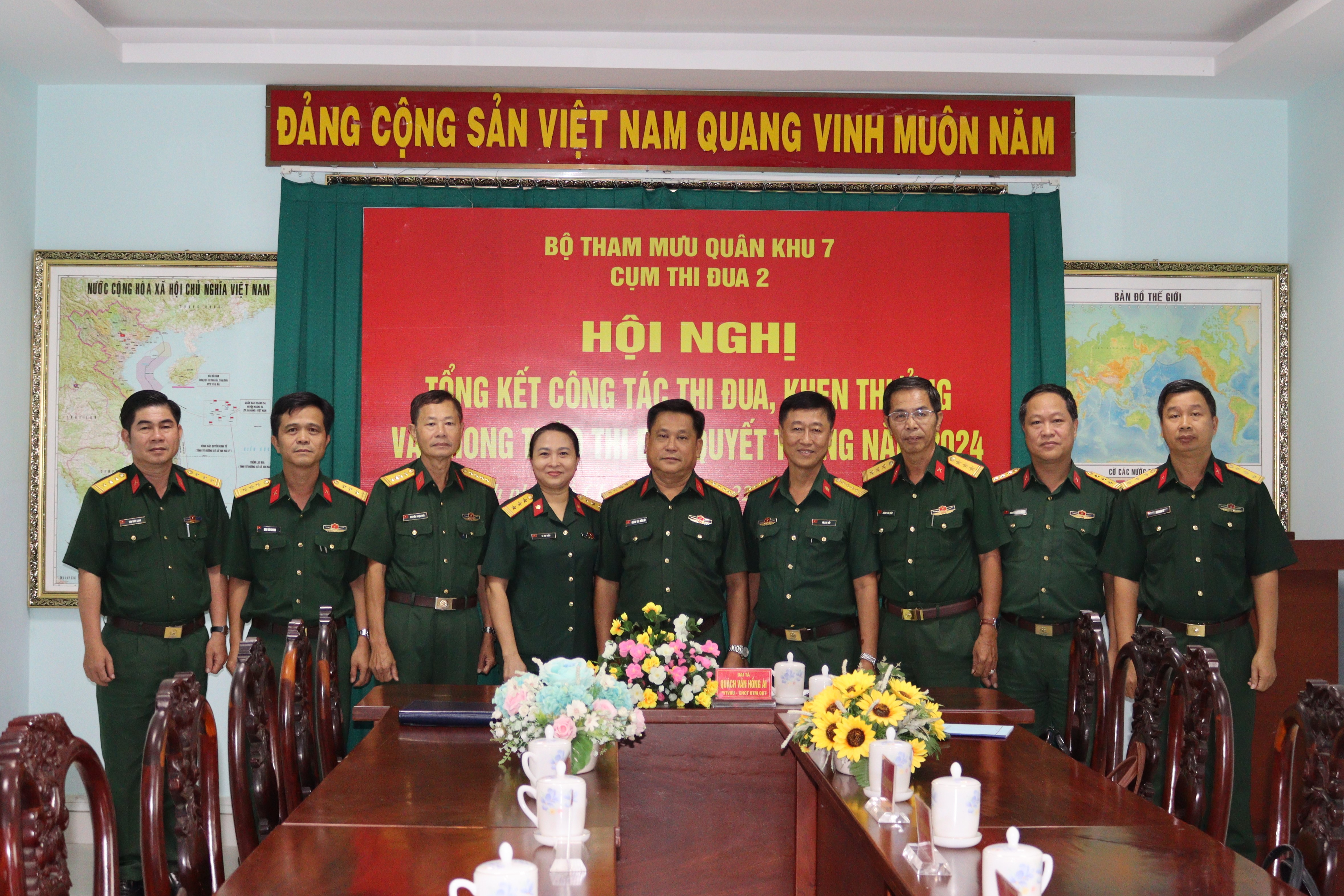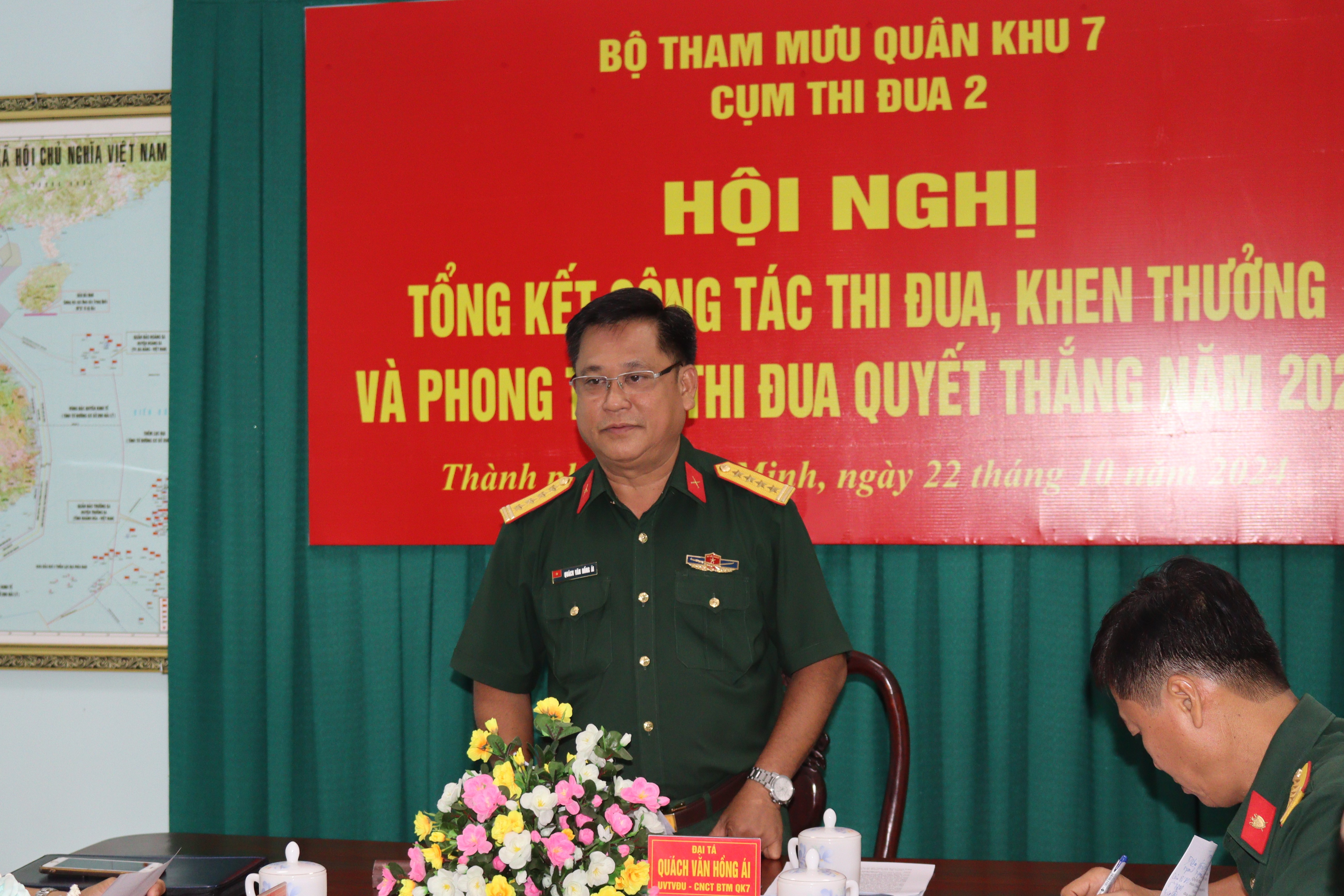 (QK7 Online) - Chiều 22/10, Cụm thi đua 2, Bộ Tham mưu Quân khu tổ chức hội nghị tổng kết công tác thi đua, khen thưởng Phong trào Thi đua Quyết thắng năm 2024. Đại tá Quách Văn Hồng Ái, Chủ nhiệm Chính trị Bộ Tham mưu Quân khu chủ trì hội nghị.