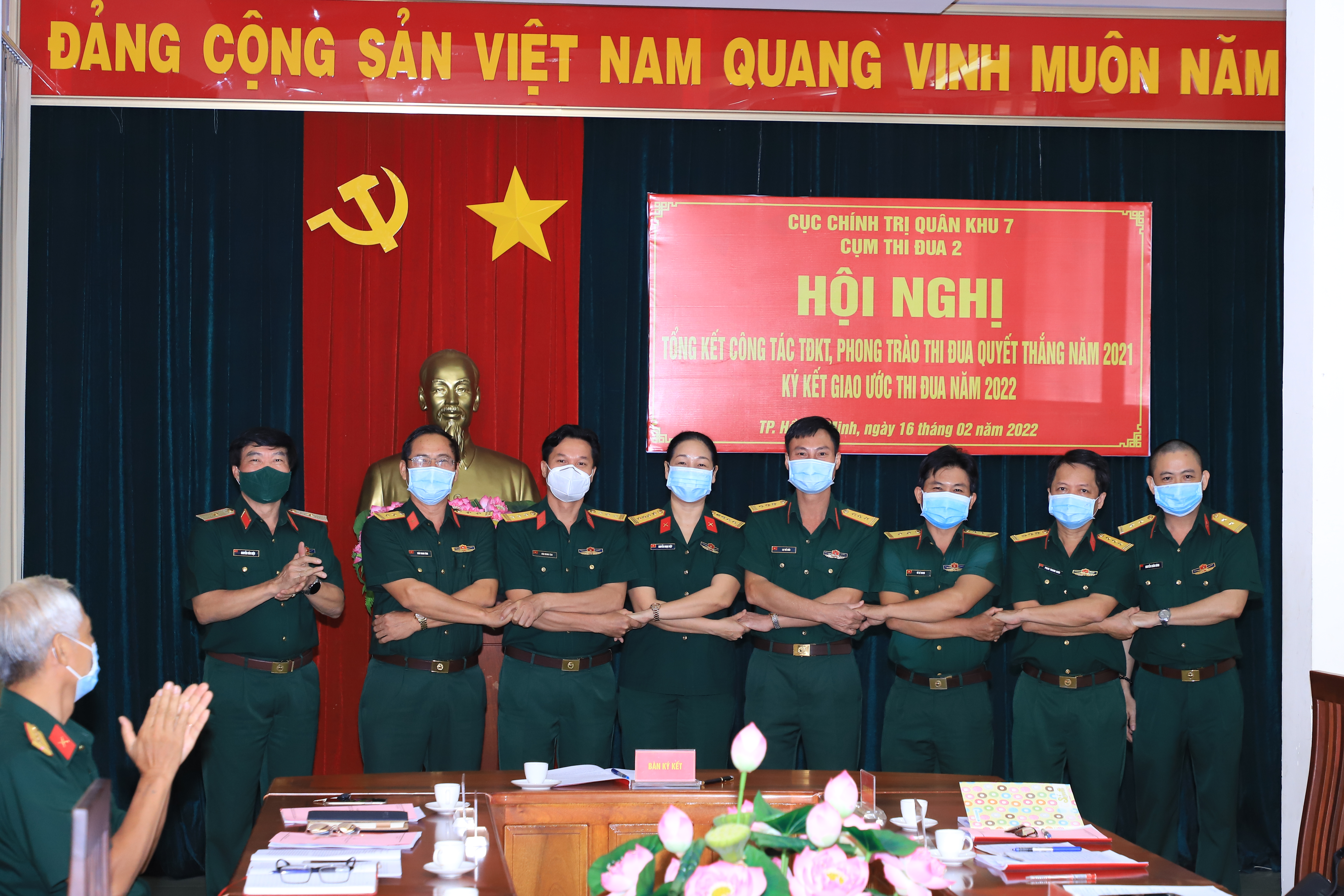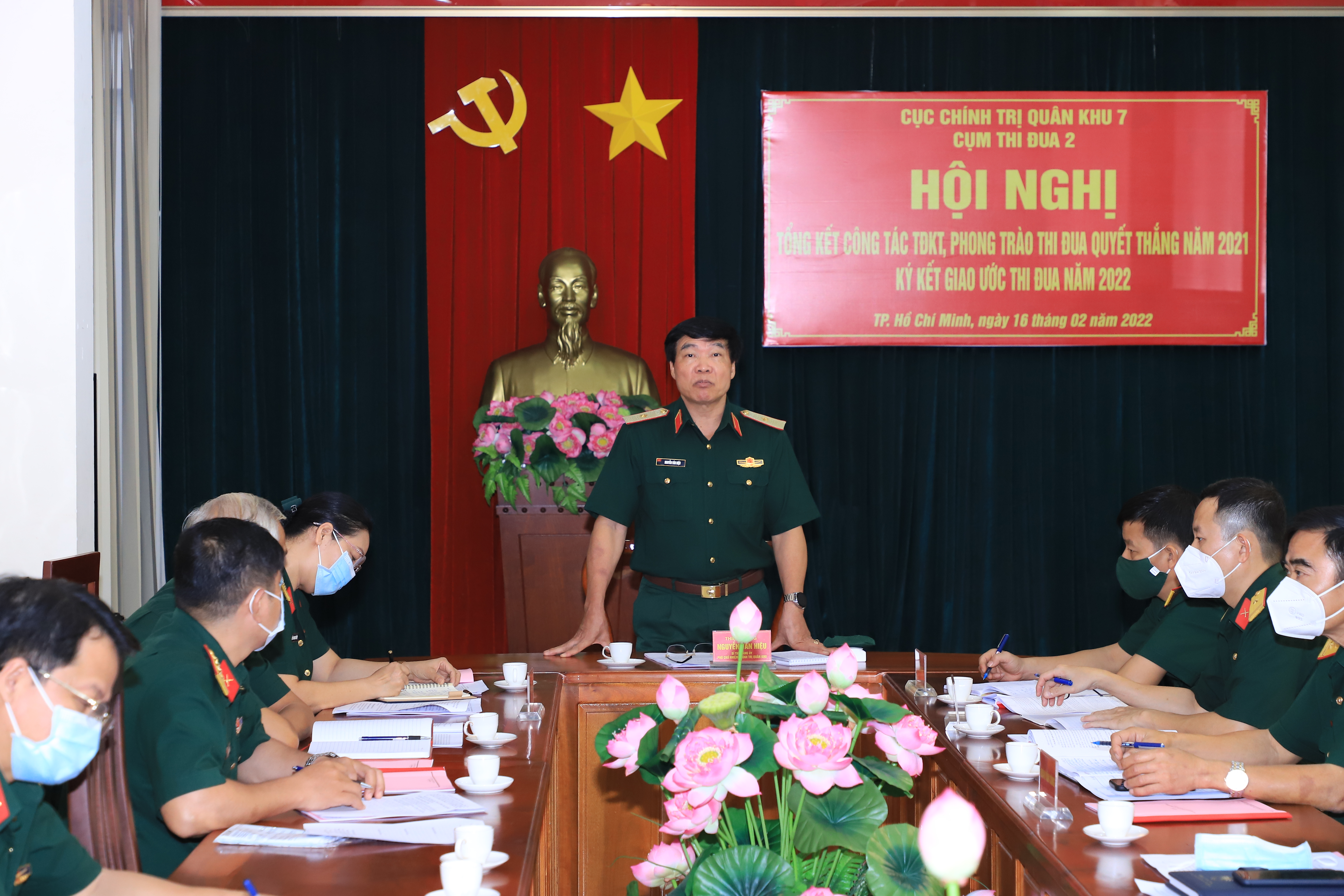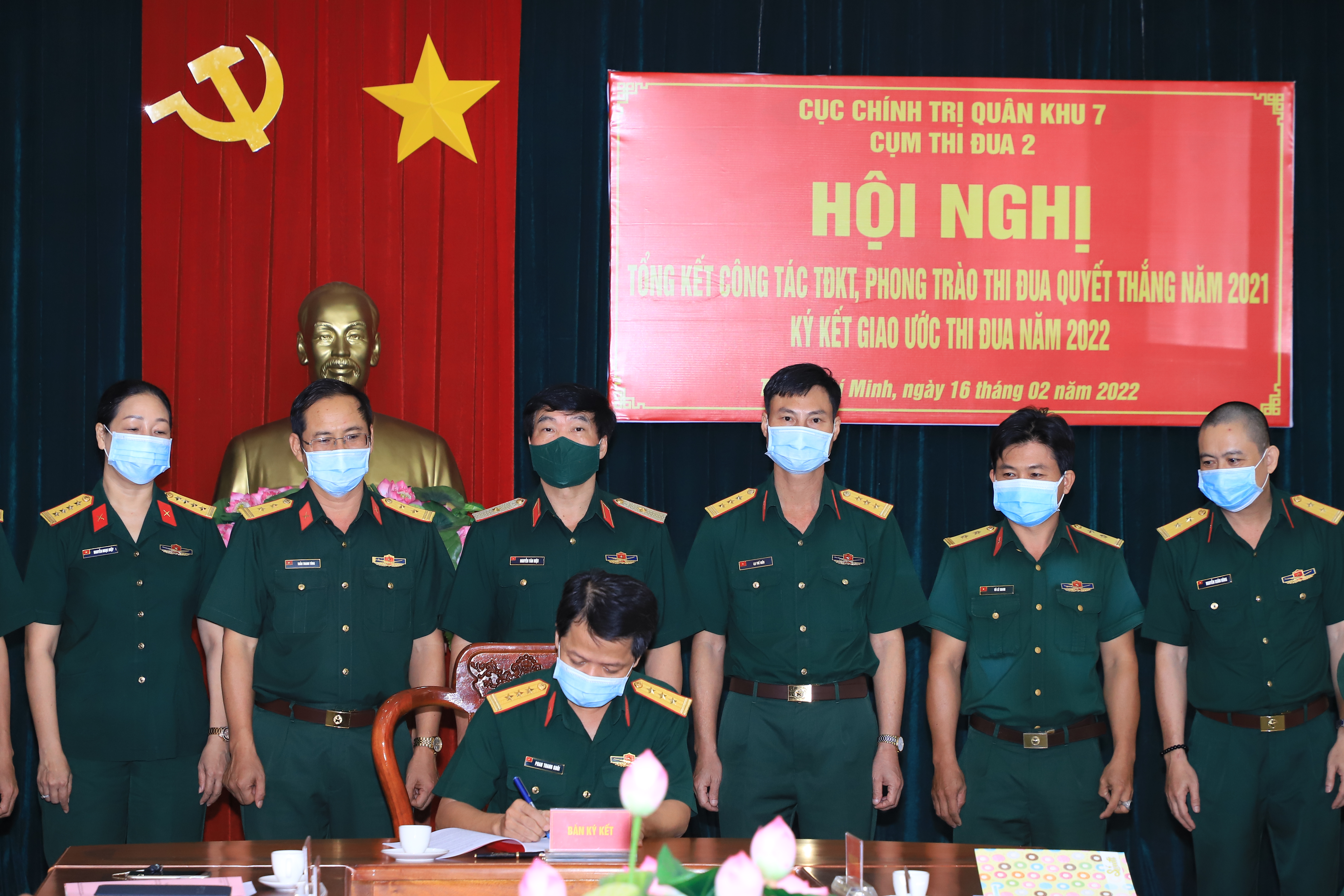 (QK7 Online) - Ngày 16/2, Cụm thi đua 2, Cục Chính trị Quân khu 7 tổ chức tổng kết công tác thi đua khen thưởng (TĐKT) và phong trào thi đua quyết thắng (TĐQT) năm 2021; ký kết giao ước thi đua năm 2022. Thiếu tướng Nguyễn Văn Hiệu, Bí thư Đảng ủy Cục Chính trị, Phó Chủ nhiệm Chính trị Quân khu đến dự.