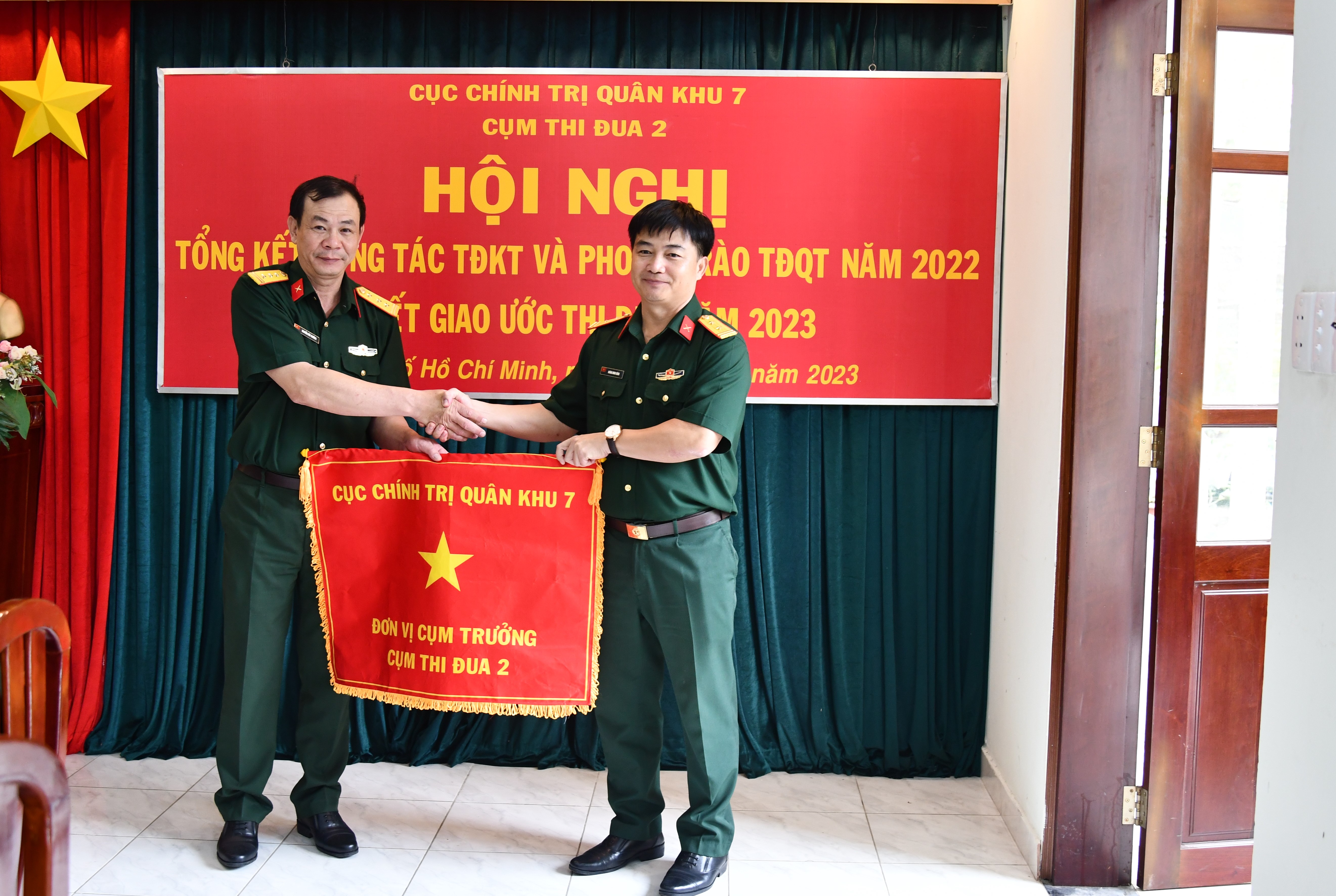 Năm 2023, với chủ đề “Đoàn kết, mẫu mực, kỷ cương, sáng tạo, quyết thắng”, Cụm thi đua 2 tiếp tục quán triệt triển khai, thực hiện nghiêm các văn bản, chỉ thị, nghị quyết của trên; tập trung đổi mới nội dung, hình thức, phương pháp tổ chức thi đua, bảo đảm cho phong trào thi đua phát triển đúng thực chất, liên tục, vững chắc; đẩy mạnh tuyên truyền, giáo dục nâng cao nhận thức về ý nghĩa, tầm quan trọng của công tác TĐKT và phong trào TĐQT gắn thi đua thường xuyên với các đợt thi đua cao điểm, đột kích; chủ động phát hiện, bồi dưỡng và nhân rộng điển hình tiên tiến. Chú trọng giáo dục chính trị, tư tưởng, phát huy tinh thần trách nhiệm đối với hạ sĩ quan, chiến sĩ, lao động hợp đồng trong thực hiện nhiệm vụ, tạo sự chuyển biến mạnh mẽ trong xây dựng đơn vị nề nếp, chính quy, chấp hành pháp luật, kỷ luật…